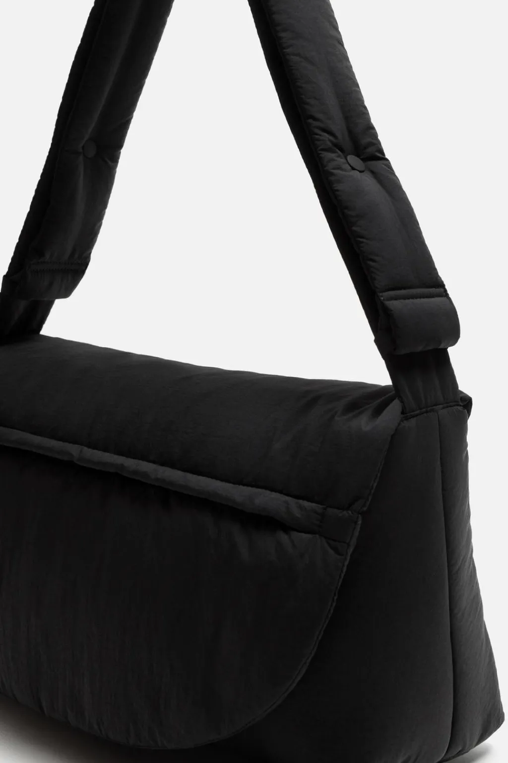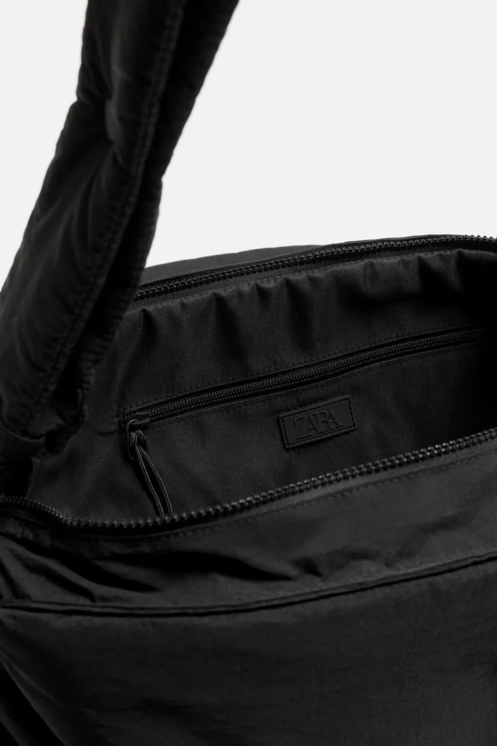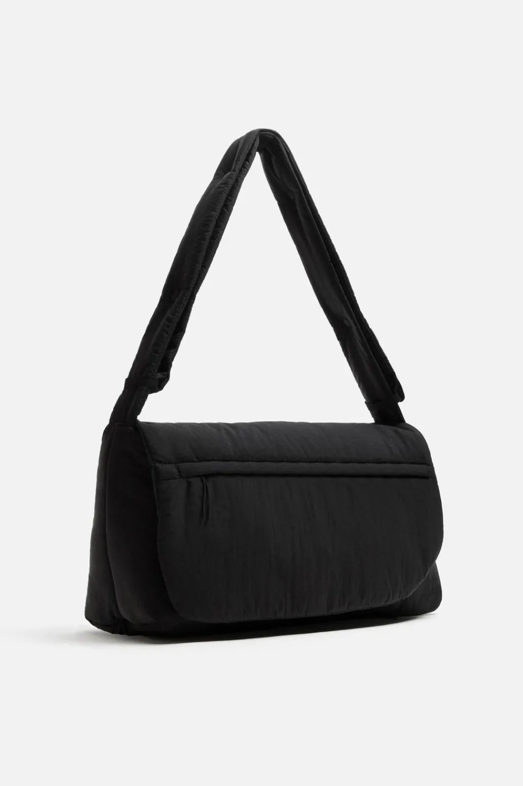 Bolso de hombro. Confeccionado en tejido técnico. Compartimento principal con cierre mediante solapa y cremallera. En la solapa cuenta con un bolsillo con cierre mediante cremallera. En el interior cuenta con un bolsillo pequeño con cierre mediante cremallera. Asa de hombro ajustable.