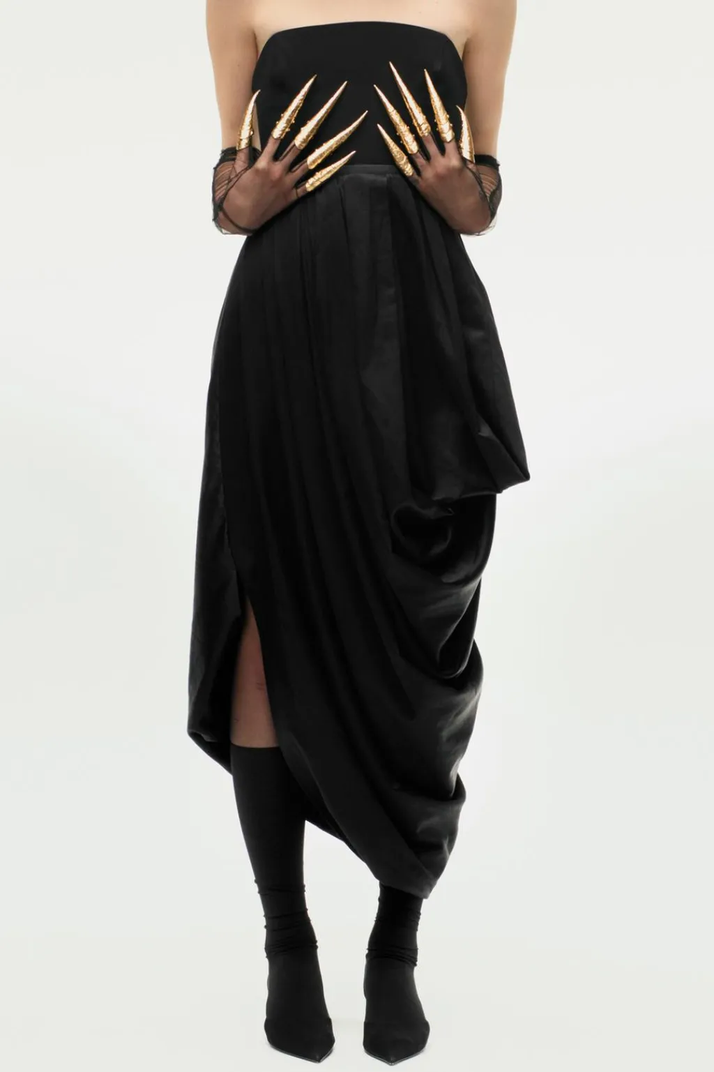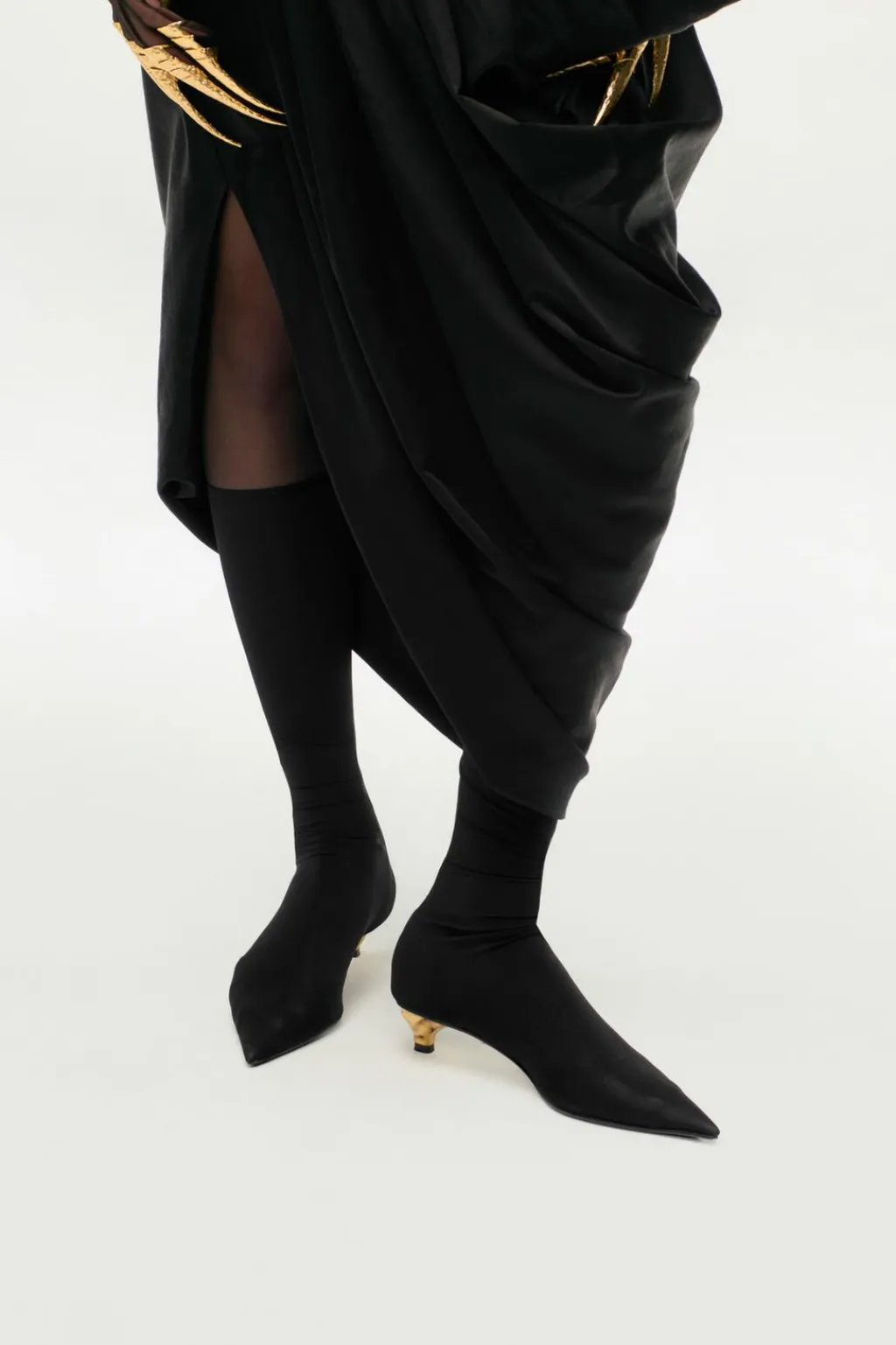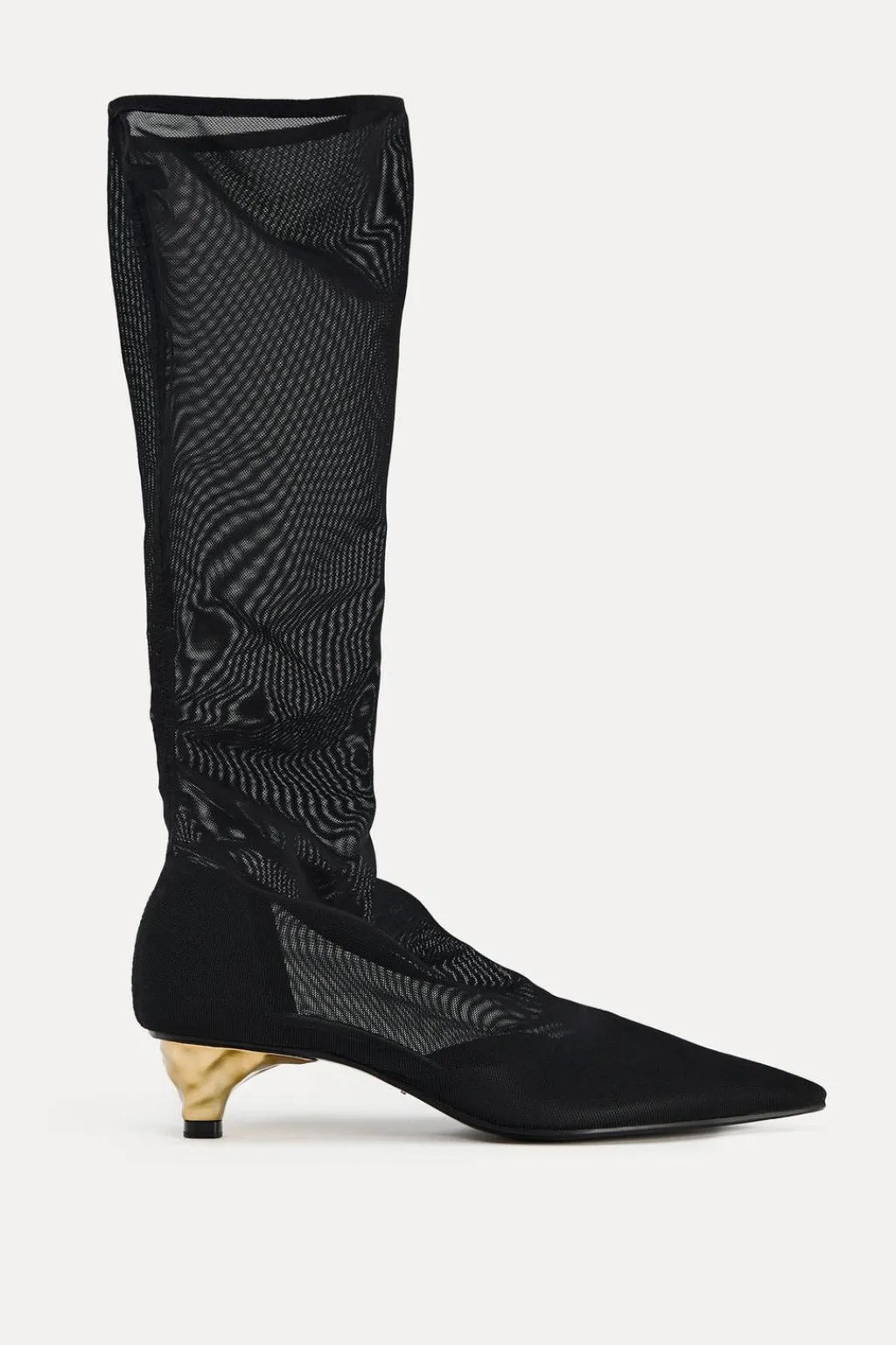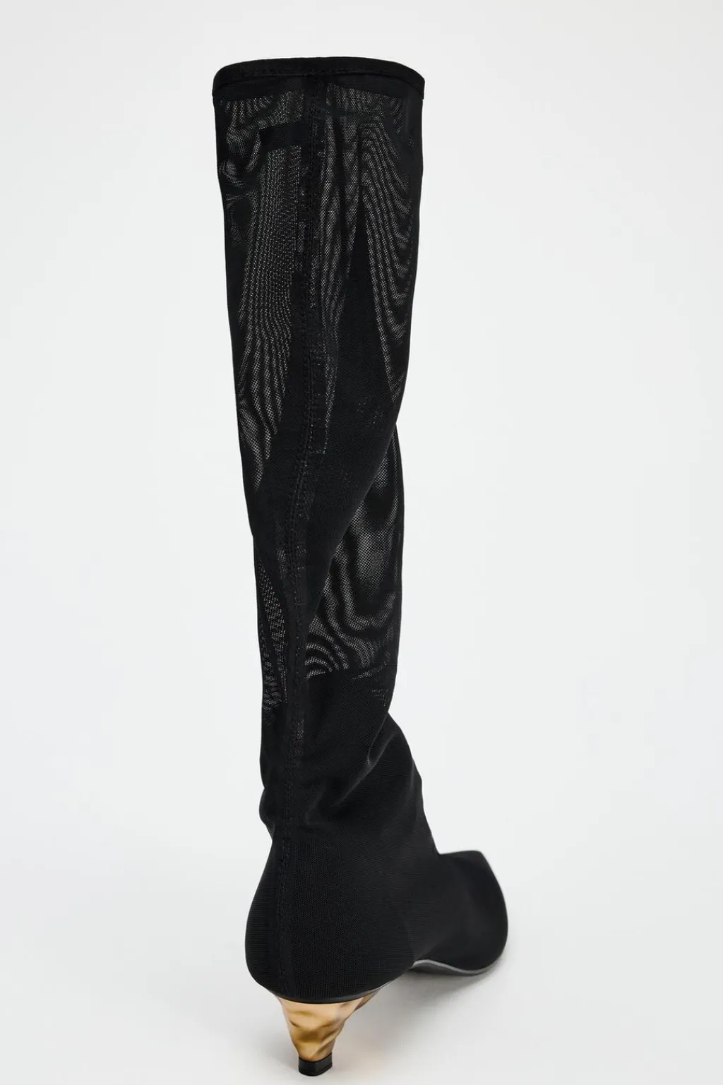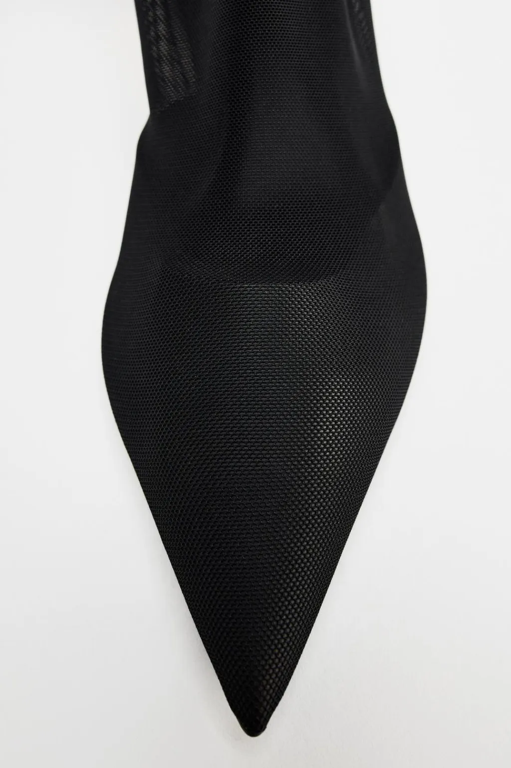 Zapato tipo bota en tejido efecto mesh. Detalle de tacón en dorado. Acabado en punta.
