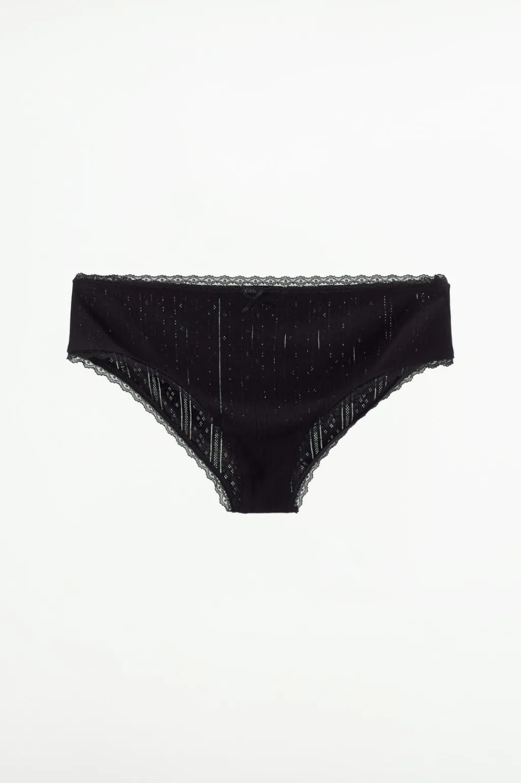 Braguita clásica confeccionada en hilatura de algodón 100%. Detalle aplicación de lazo en delantero combinado a tono. Acabados en puntilla.