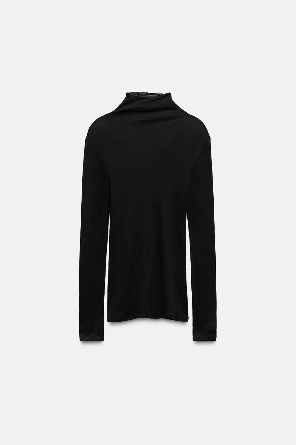 Camiseta confeccionada en hilatura de algodón 100%. Cuello alto y manga larga.