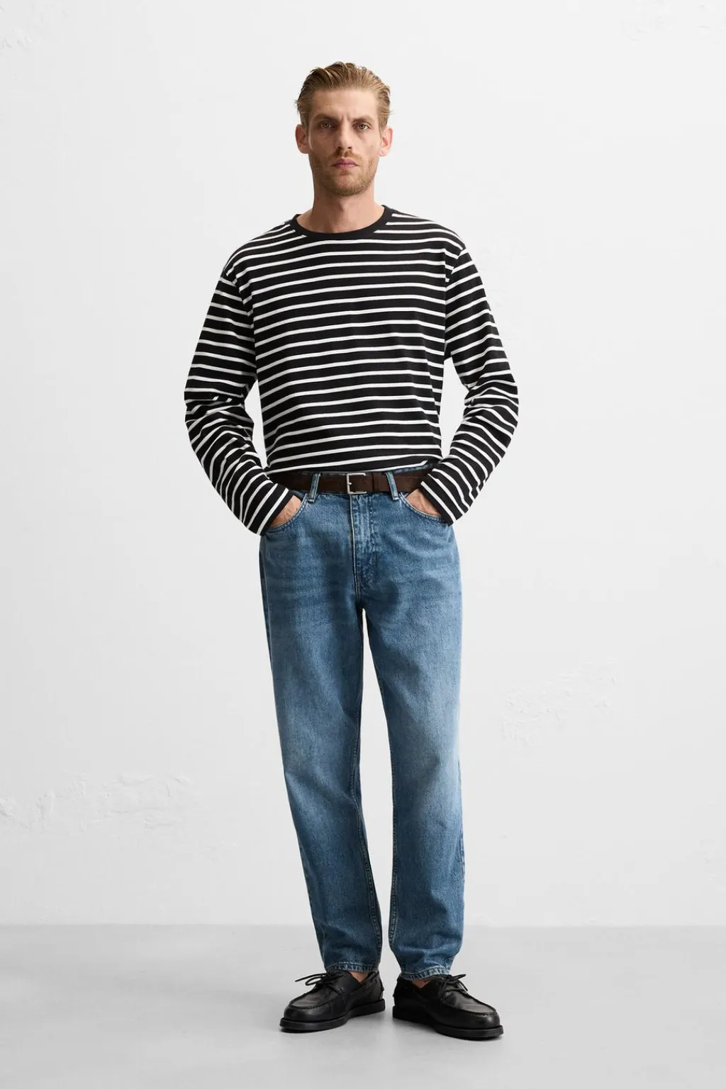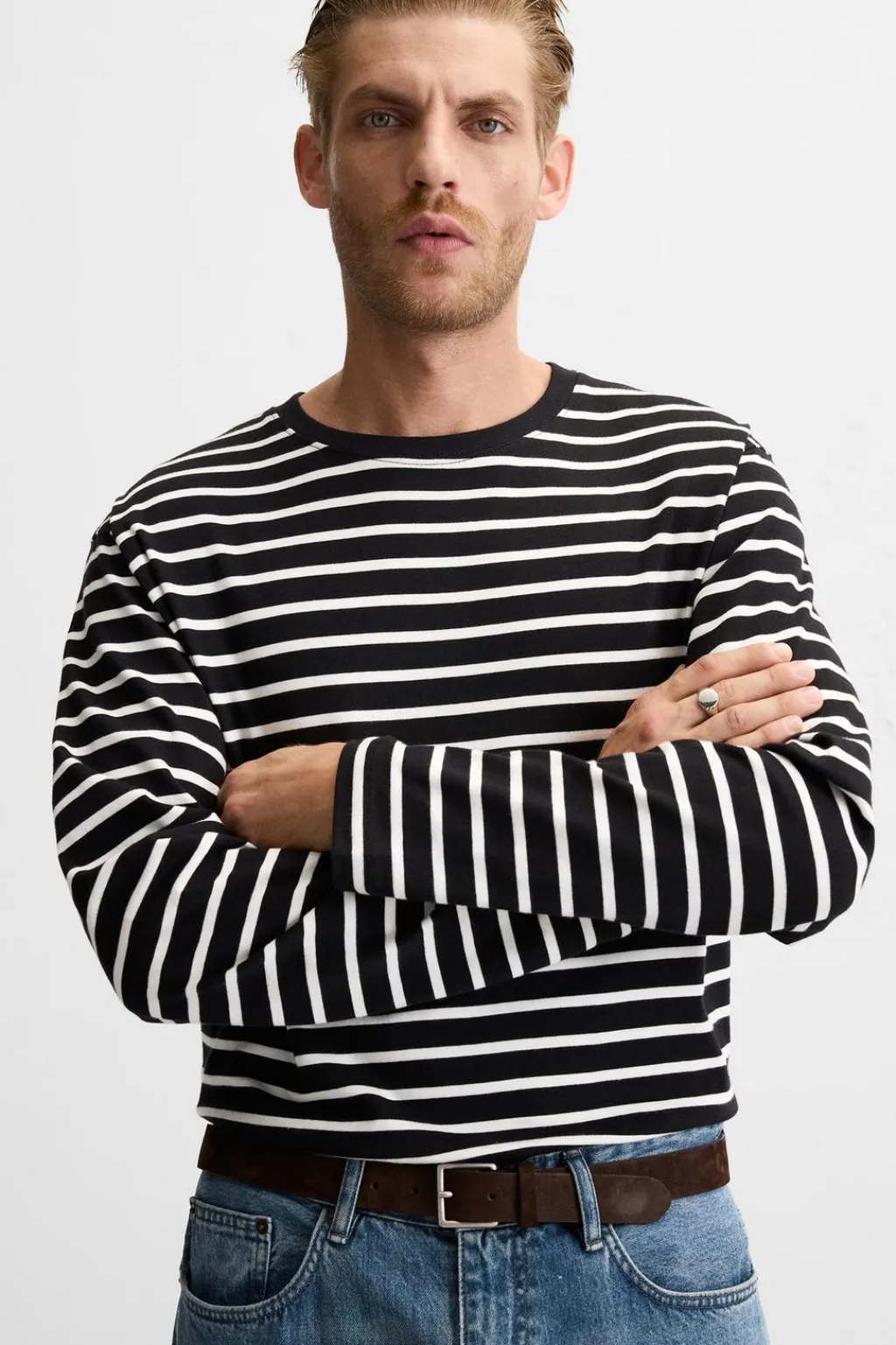 Camiseta regular fit. Cuello redondo y manga larga.