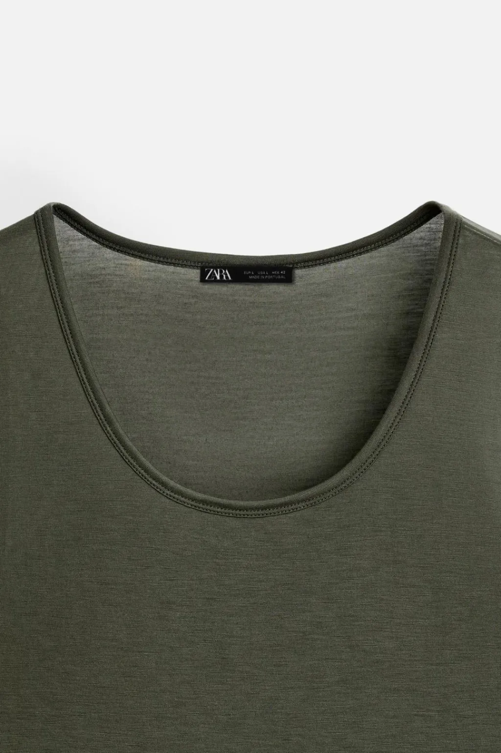 Camiseta fluida confeccionada en tejido de lyocell. Cuello redondo amplio y manga sisa.
