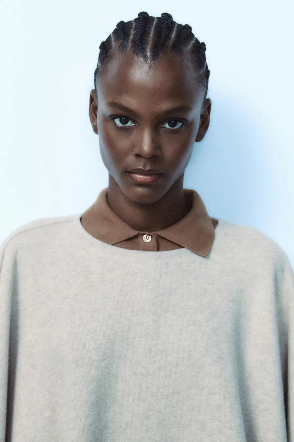 Capa confeccionada en tejido soft de cuello redondo. Bajo acabado asimétrico.
