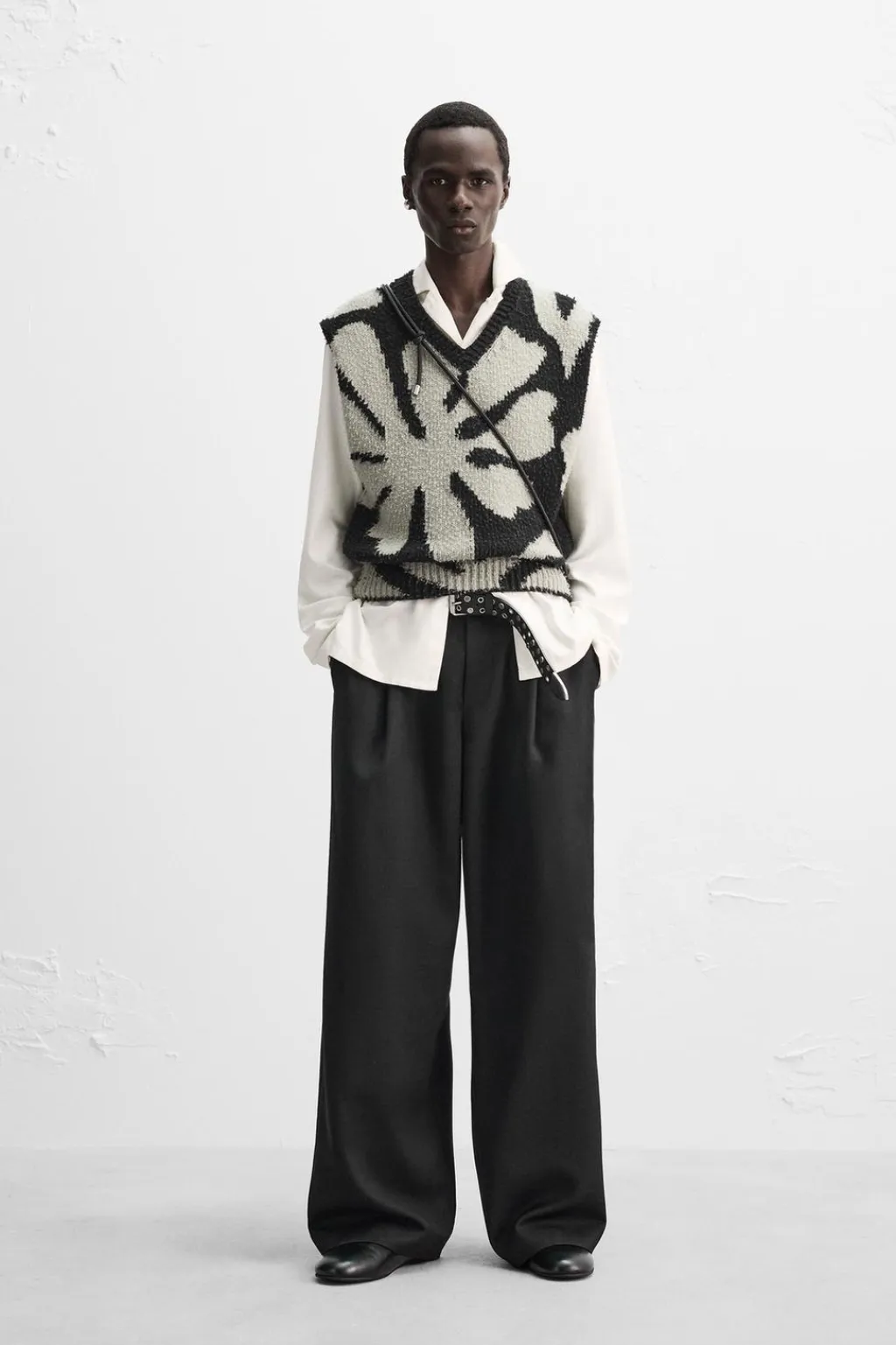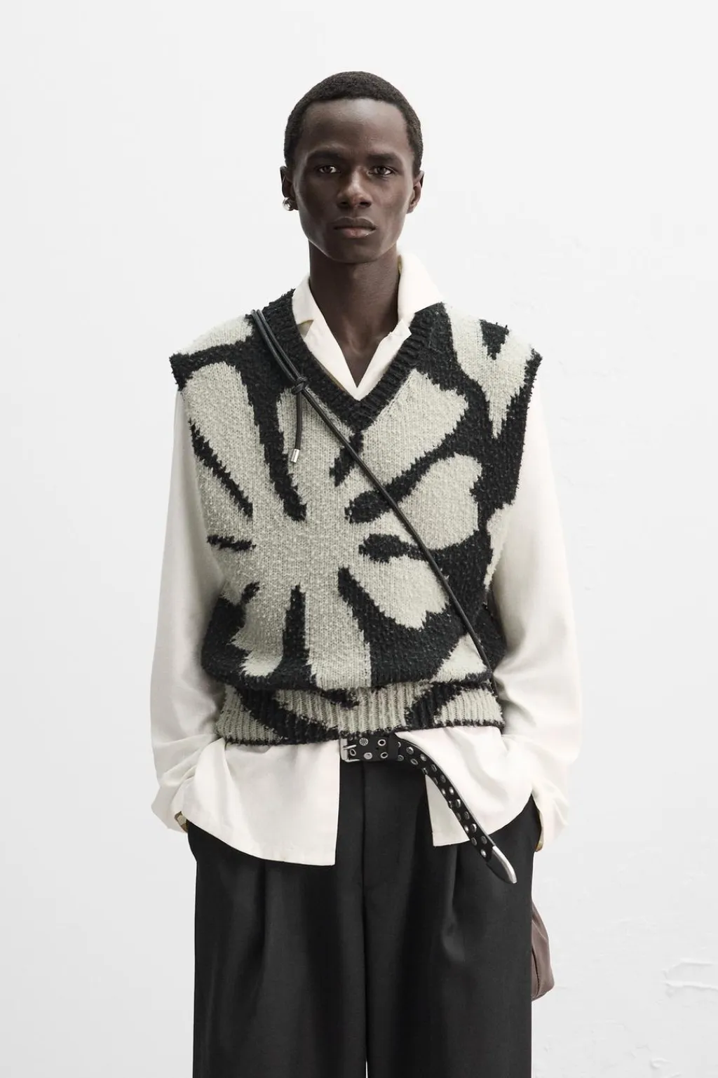 Chaleco cropped fit de punto tejido en hilatura con mezcla de lana. Acabado frisado. Acabados en rib.