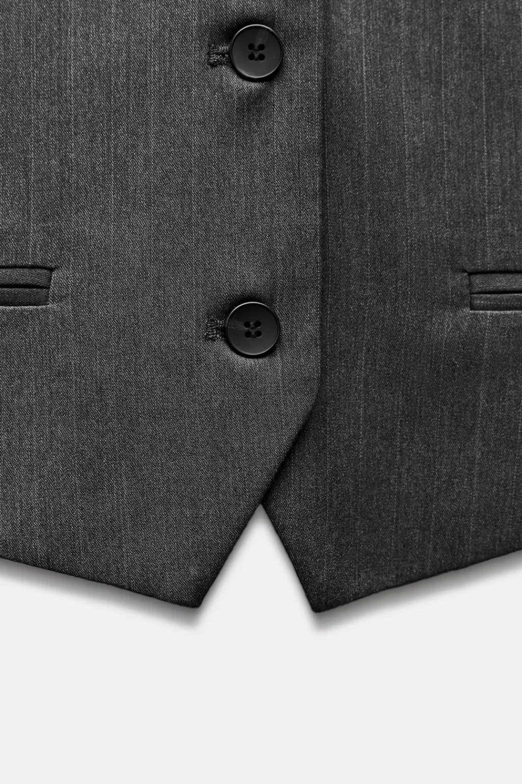 Chaleco de escote pico y manga sisa. Bolsillos de vivo en delantero. Forro interior combinado. Trabilla ajustable en espalda y bajo con aberturas. Cierre frontal con botones.