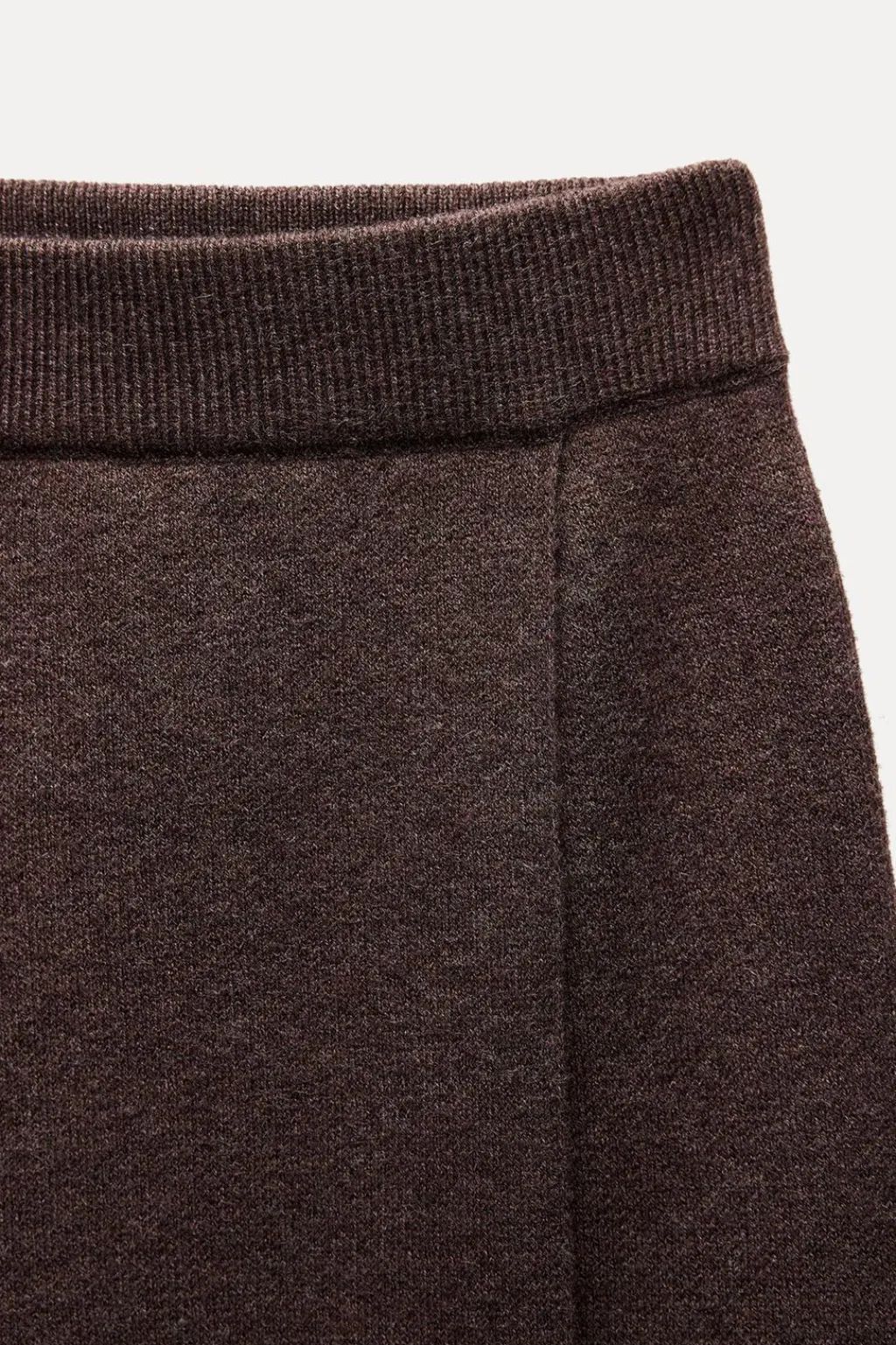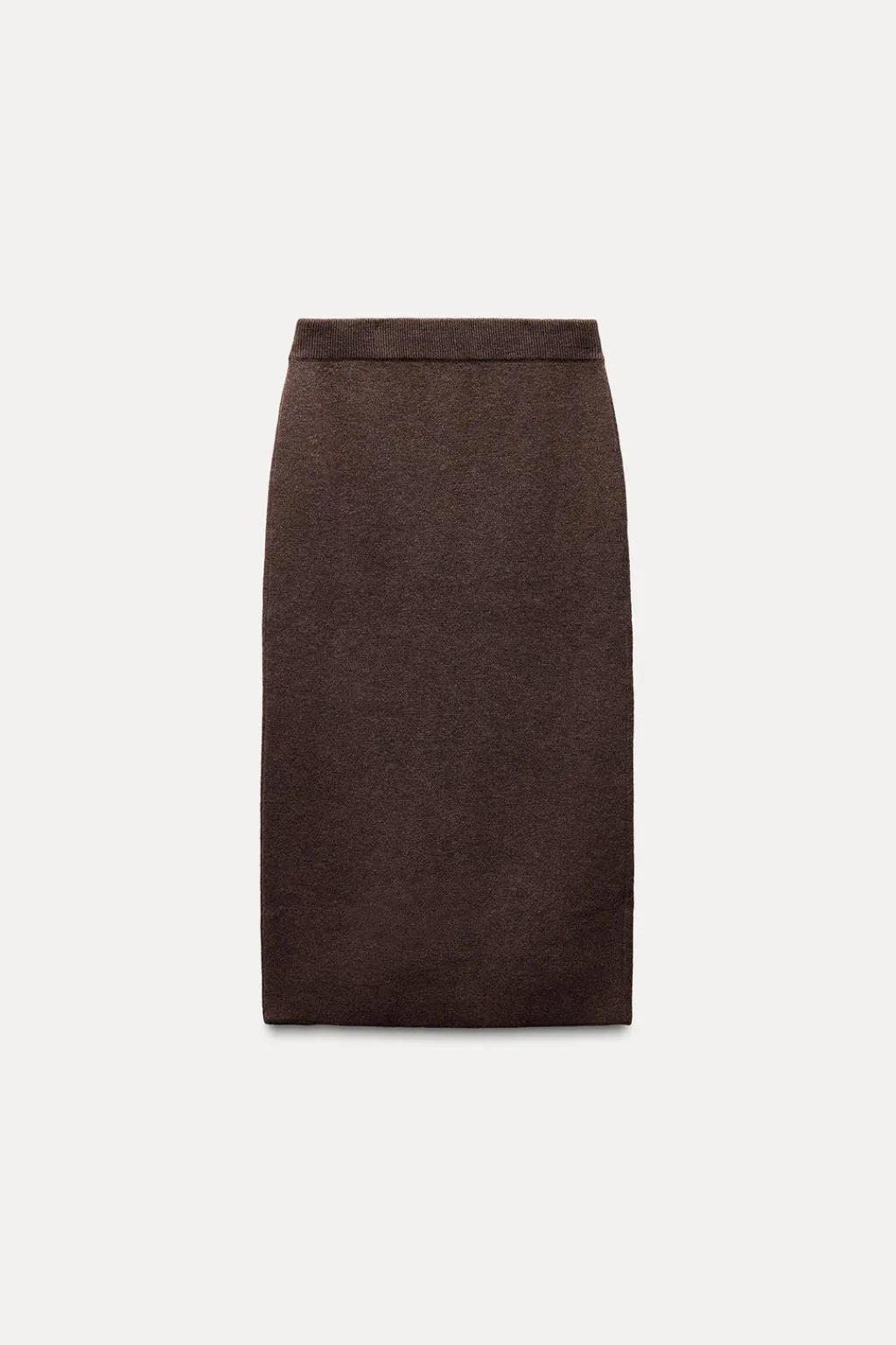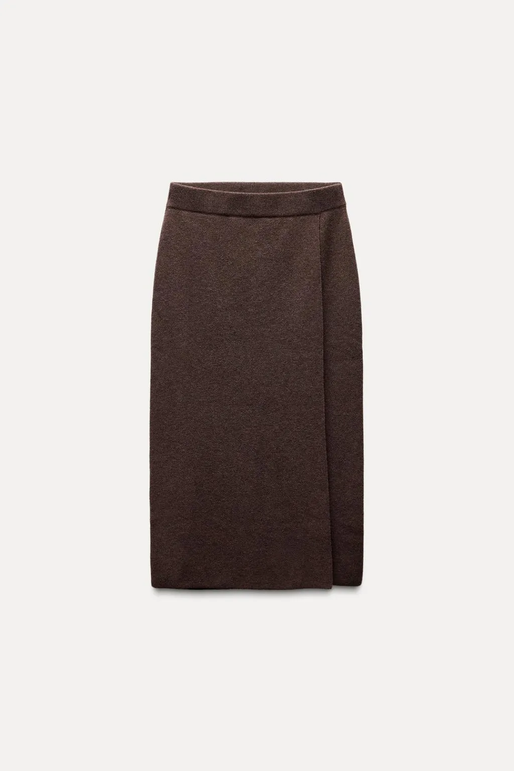 Falda midi de tiro alto con cintura elástica. Delantero cruzado.