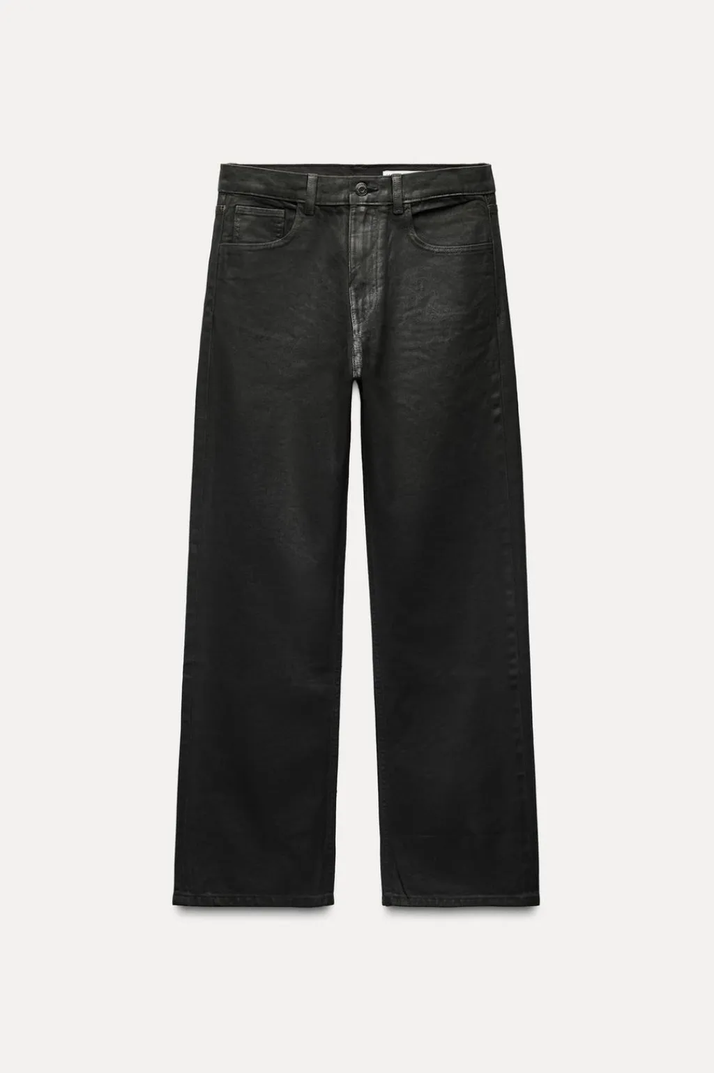Jeans de tiro medio y cintura con trabillas. Cinco bolsillos. Pierna recta. Cierre frontal con cremallera y botón.