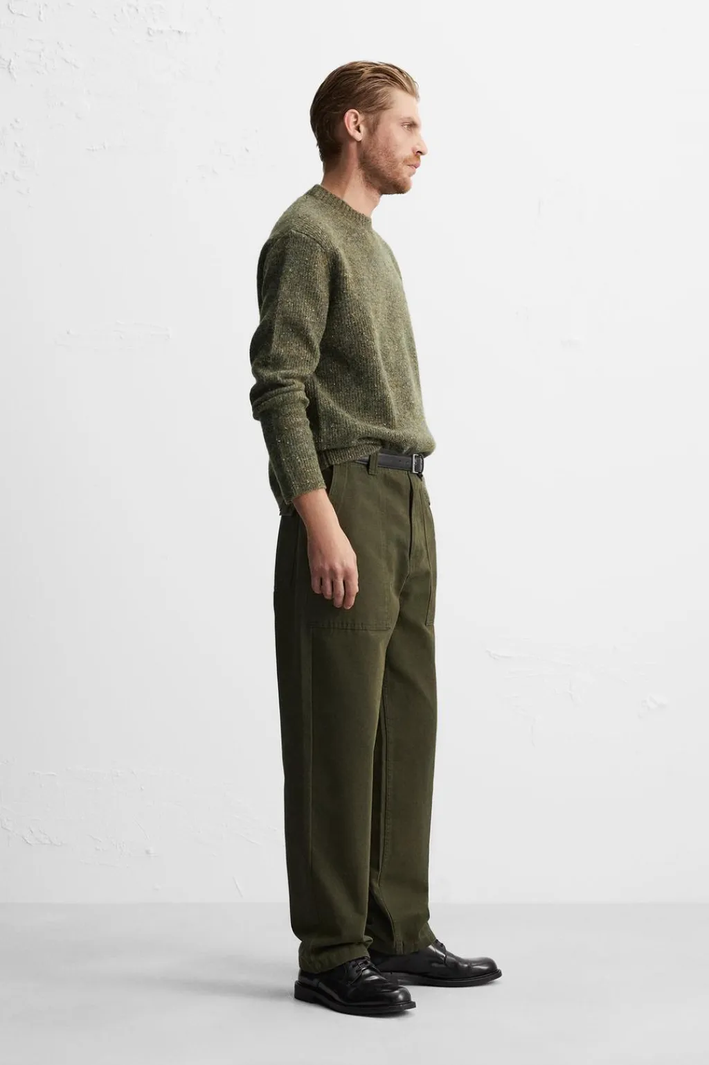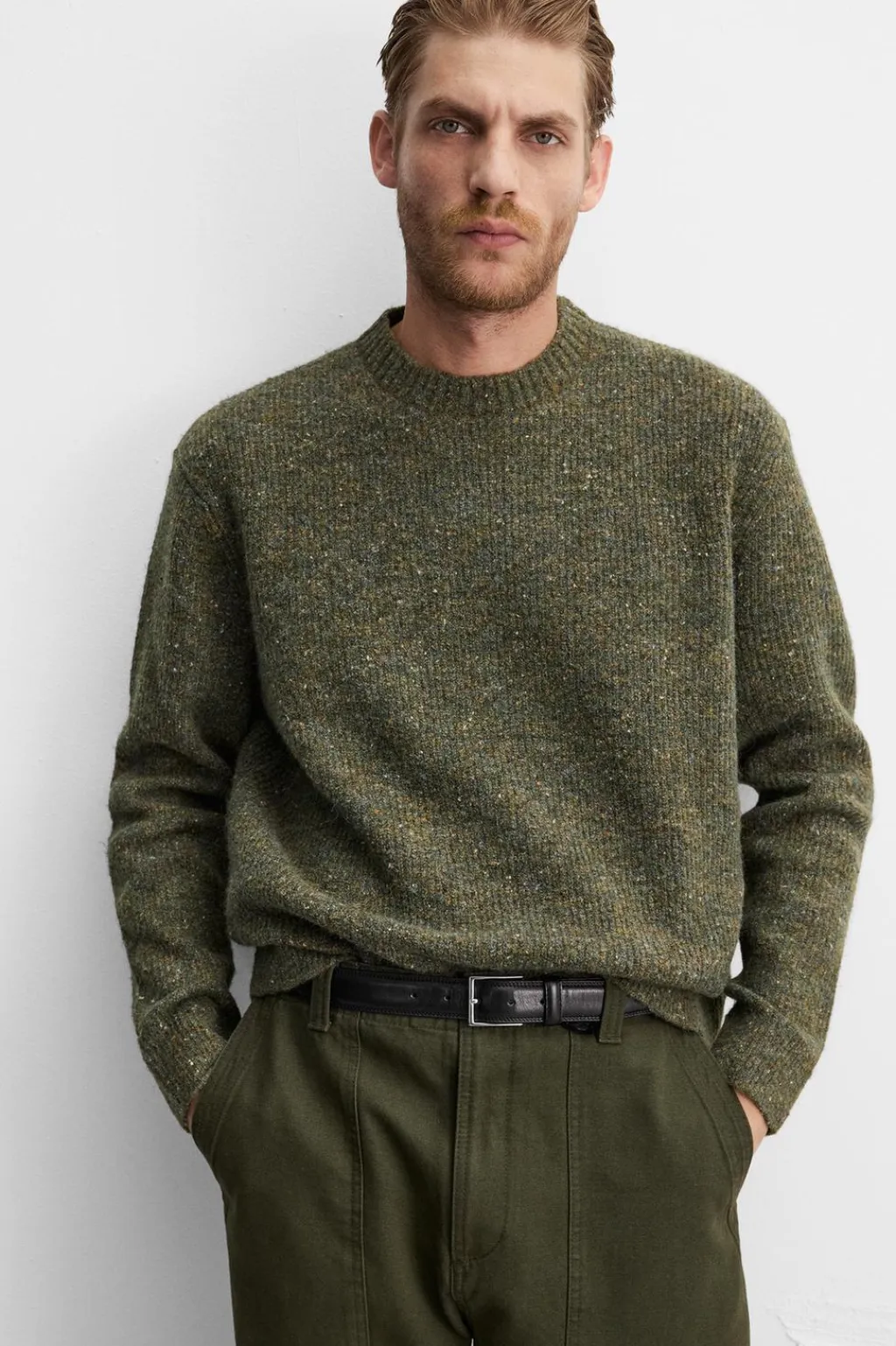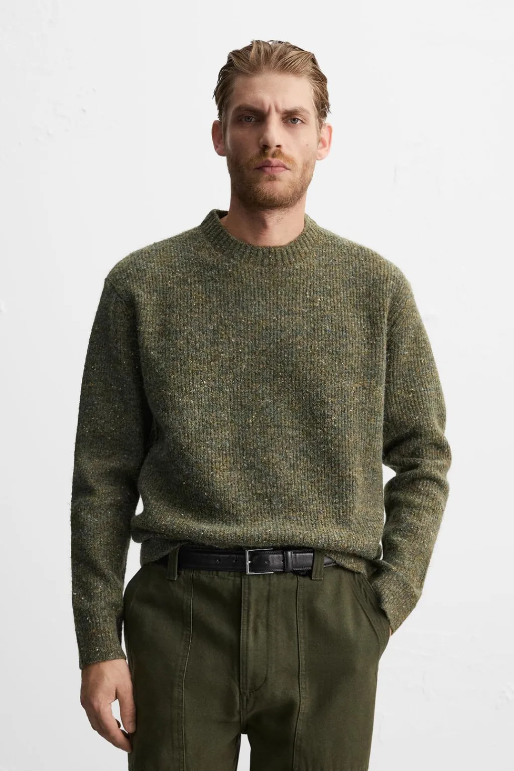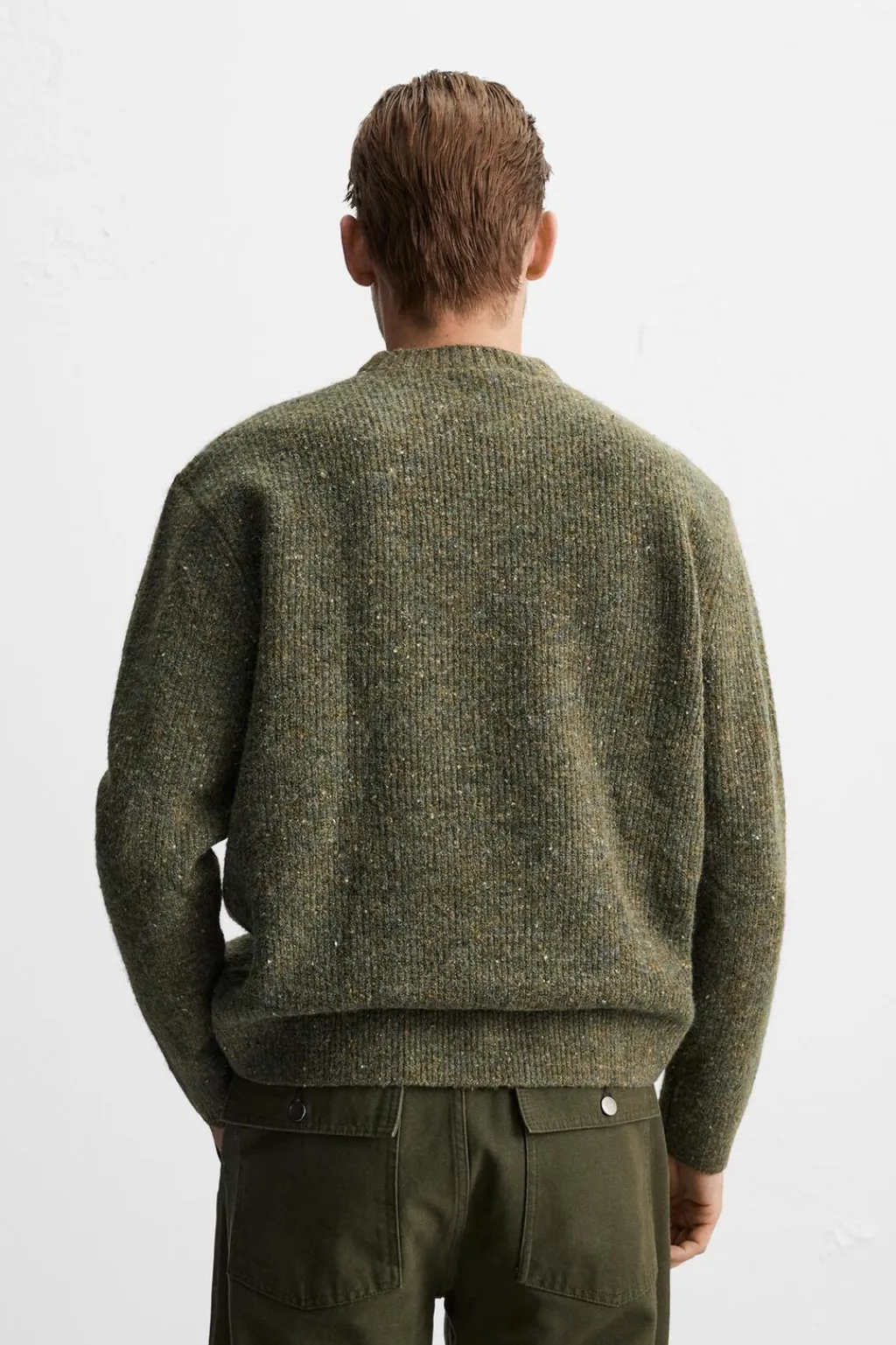 Jersey relaxed fit tejido en hilatura con estructura canalé. Cuello redondo y manga larga. Acabados en rib.