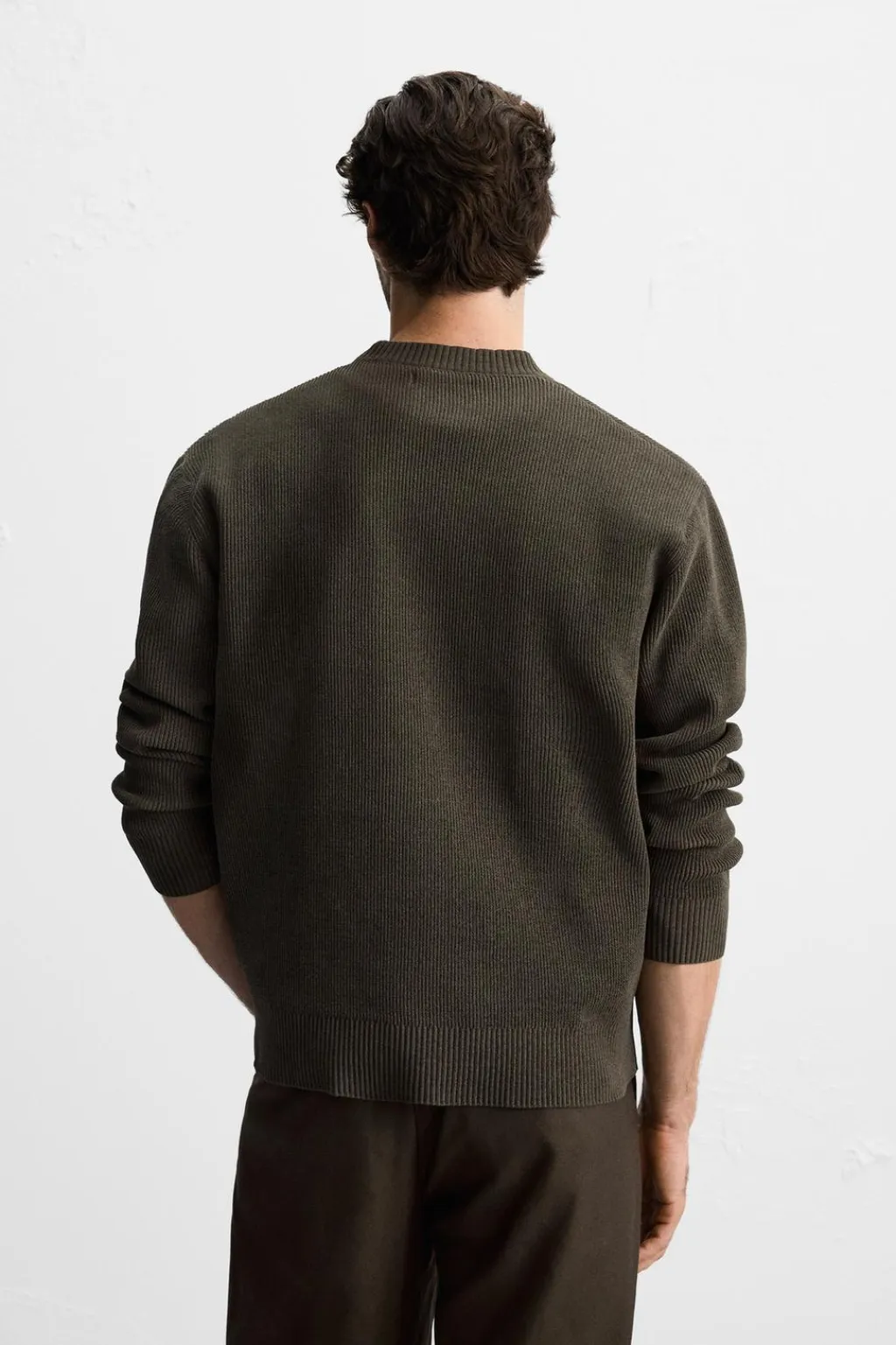Jersey regular fit tejido en hilatura con textura chenilla. Cuello redondo y manga larga. Acabados en rib.