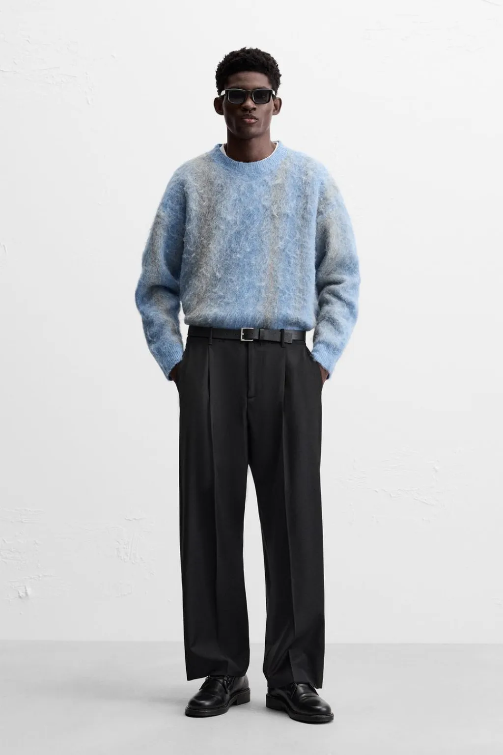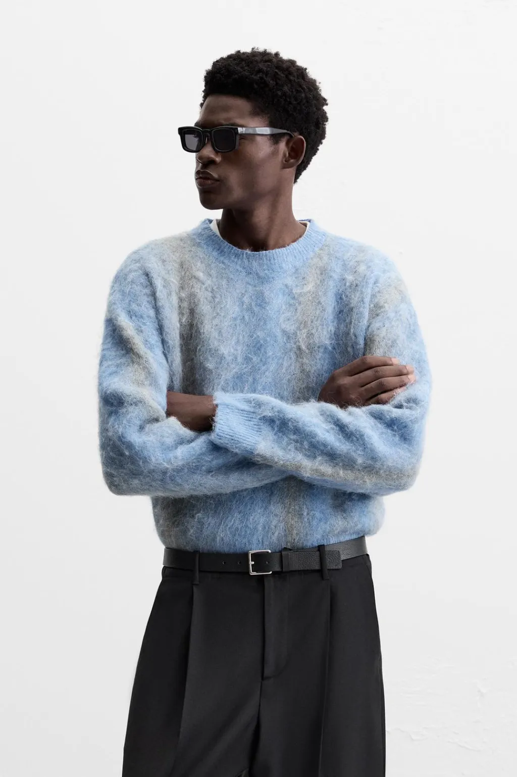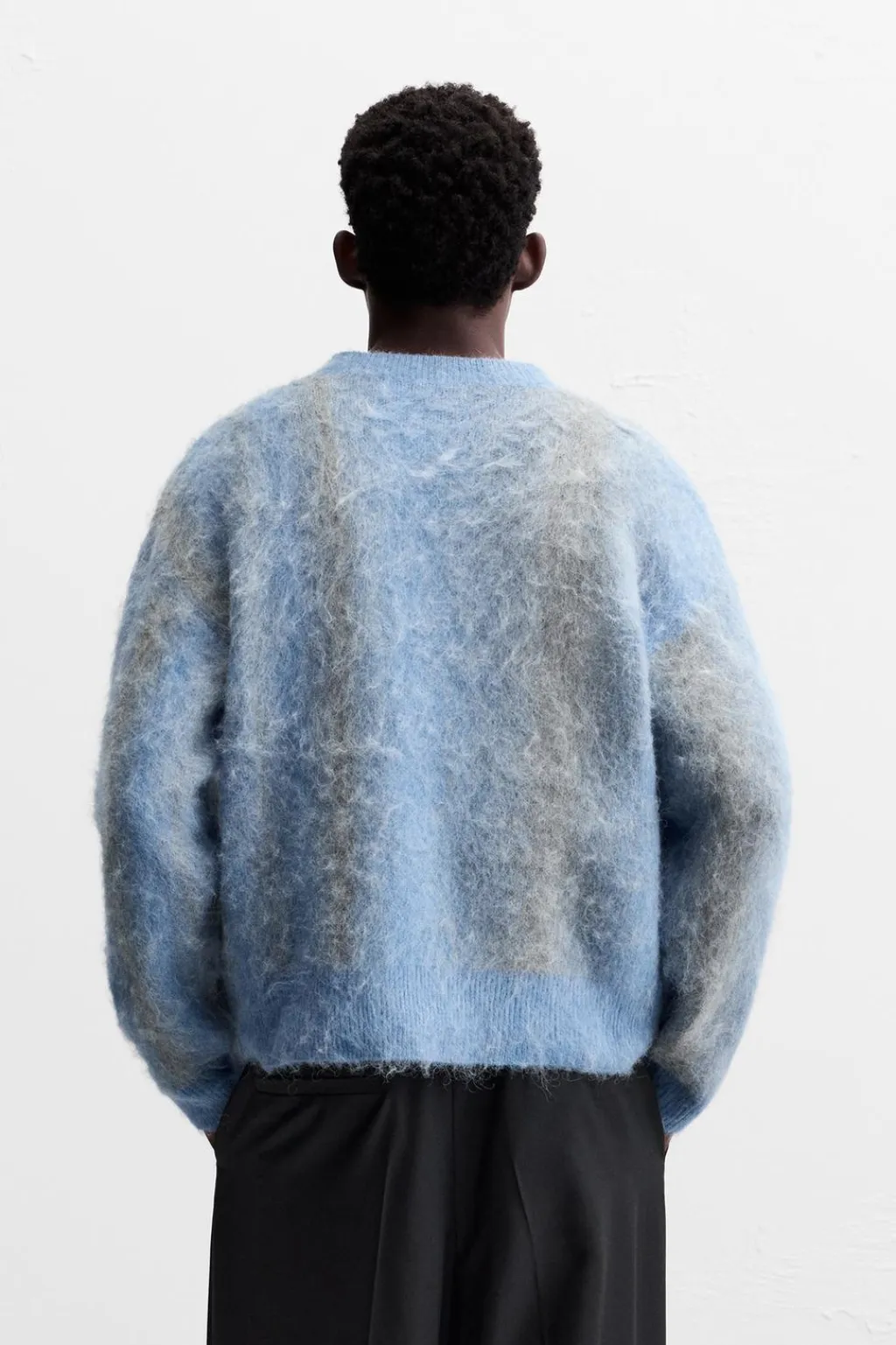 Jersey relaxed fit tejido en hilatura con acabado cepillado. Cuello redondo y manga larga. Acabados en rib.