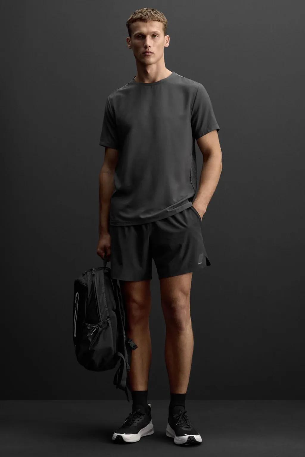 Mochila deportiva. Exterior fabricado en tejido técnico. Compartimento principal con cierre mediante cremallera y tres bolsillos interiores. Dos bolsillos frontales con cierre mediante cremallera. Bolsillos auxiliares laterales con cierre ajustable. Parte posterior acolchada. Asas de hombro ajustables.