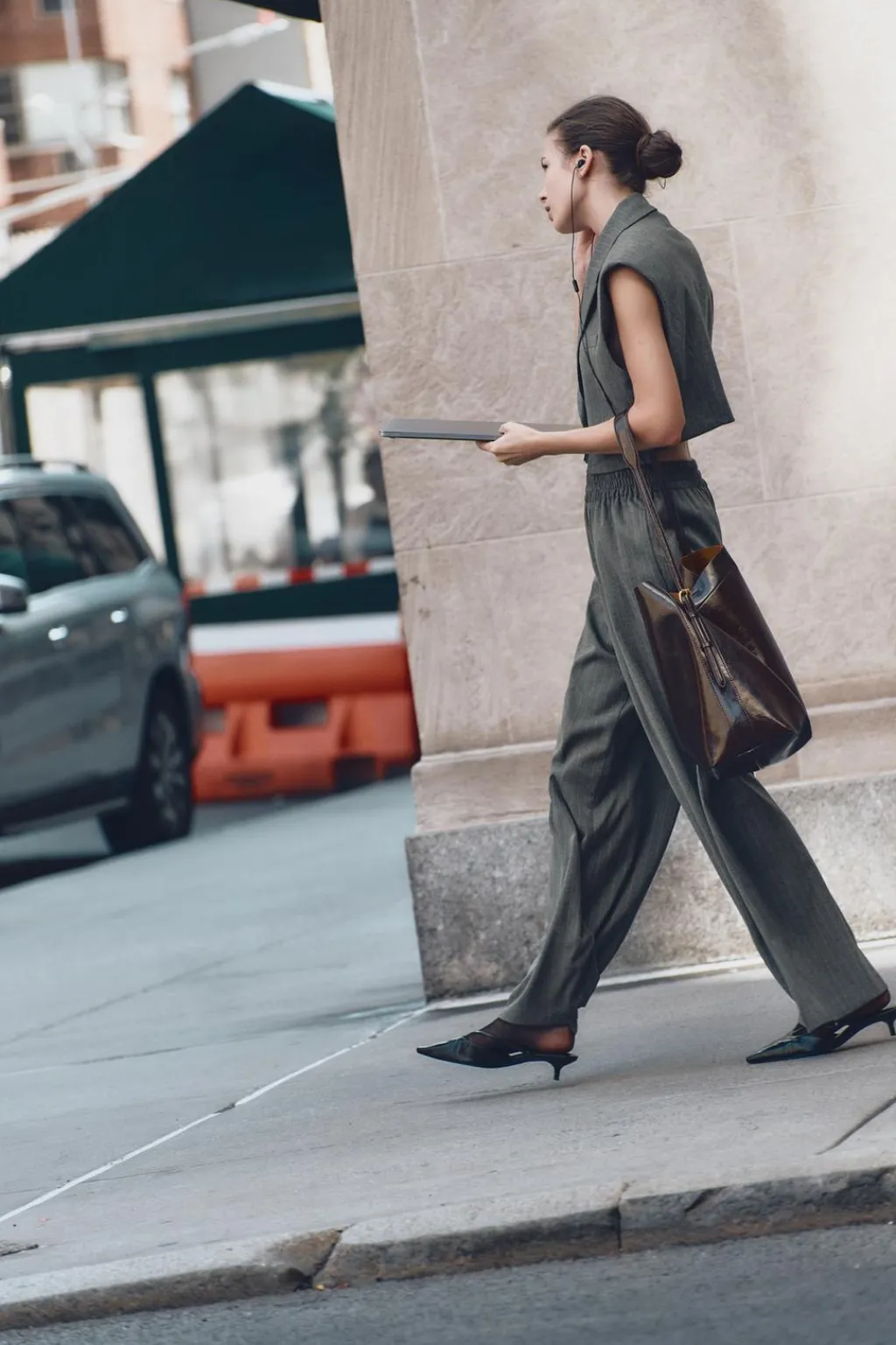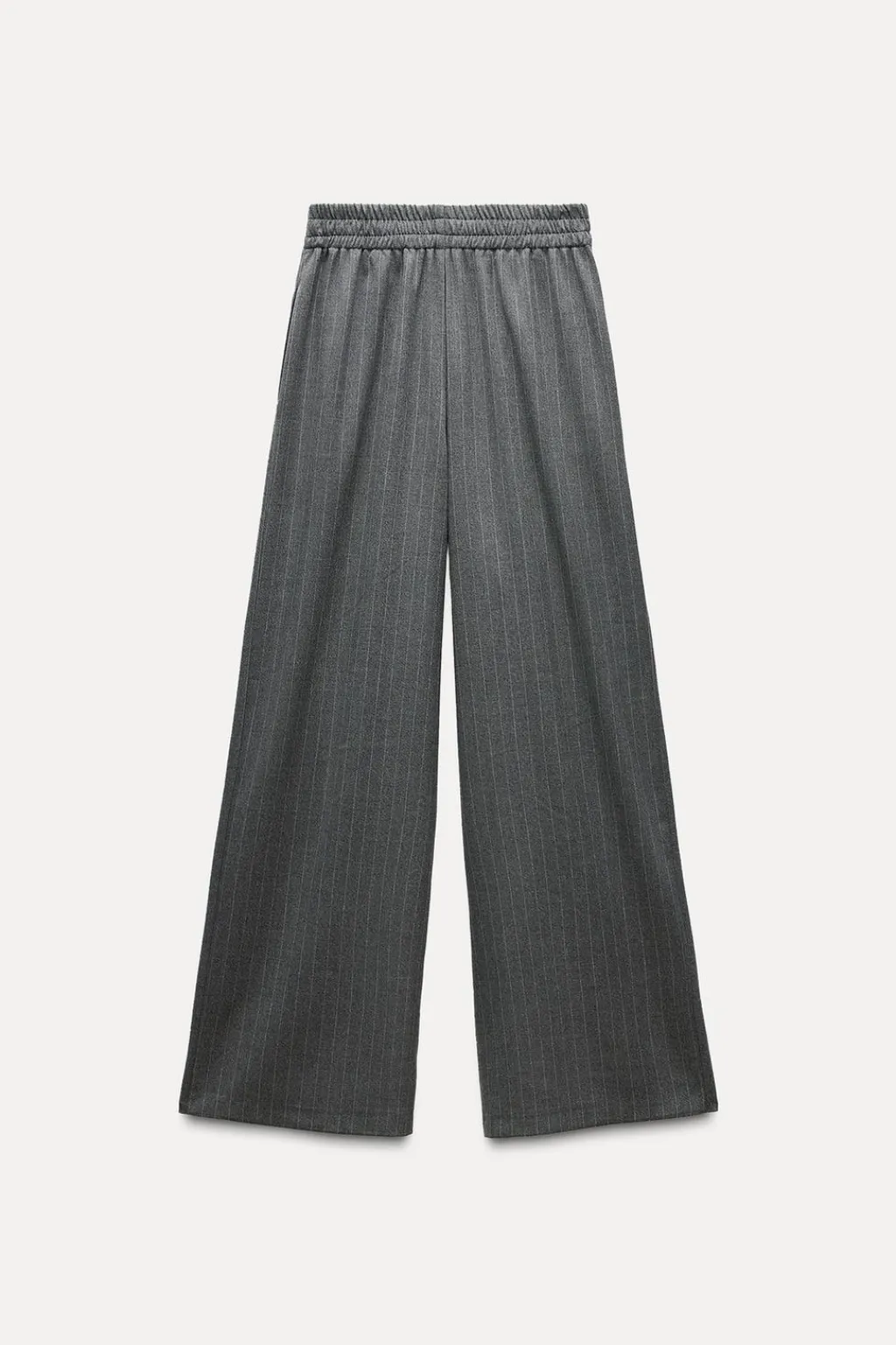 Pantalón de tiro alto con cintura elástica. Pernera ancha.