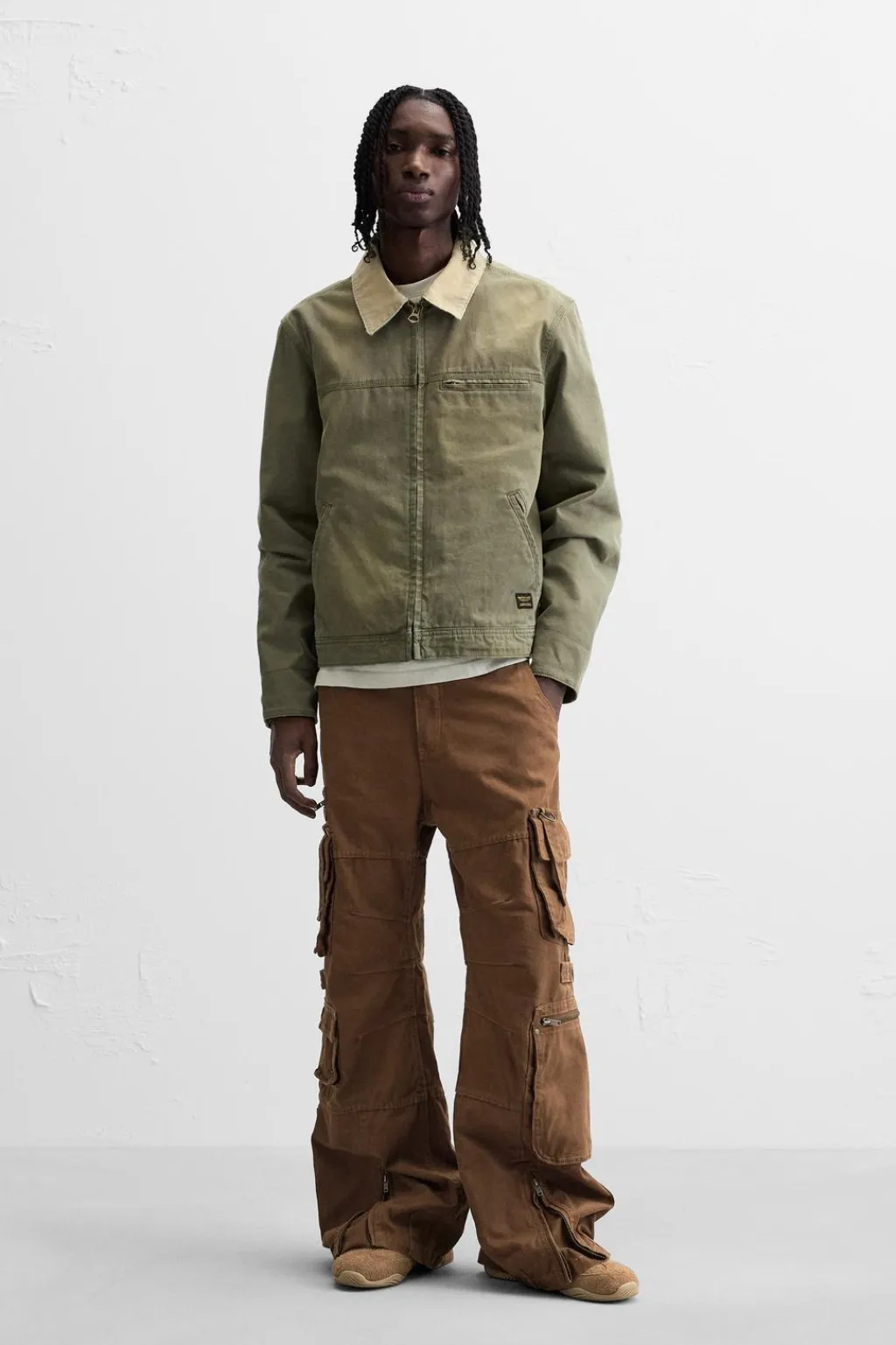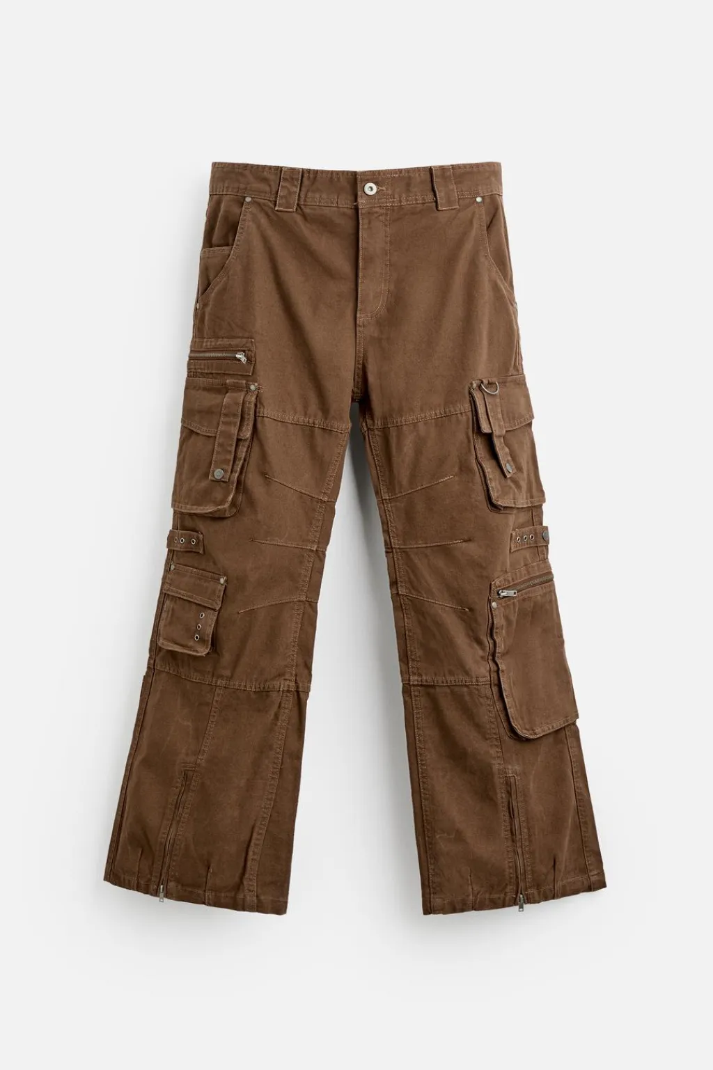 Pantalón relaxed fit. Bolsillos frontales y detalle de bolsillos traseros de solapa. Aplicación de bolsillos y tiras multifunción en perneras. Bajo ajustable con cremalleras. Efecto lavado. Cierre frontal con cremallera y botón.
