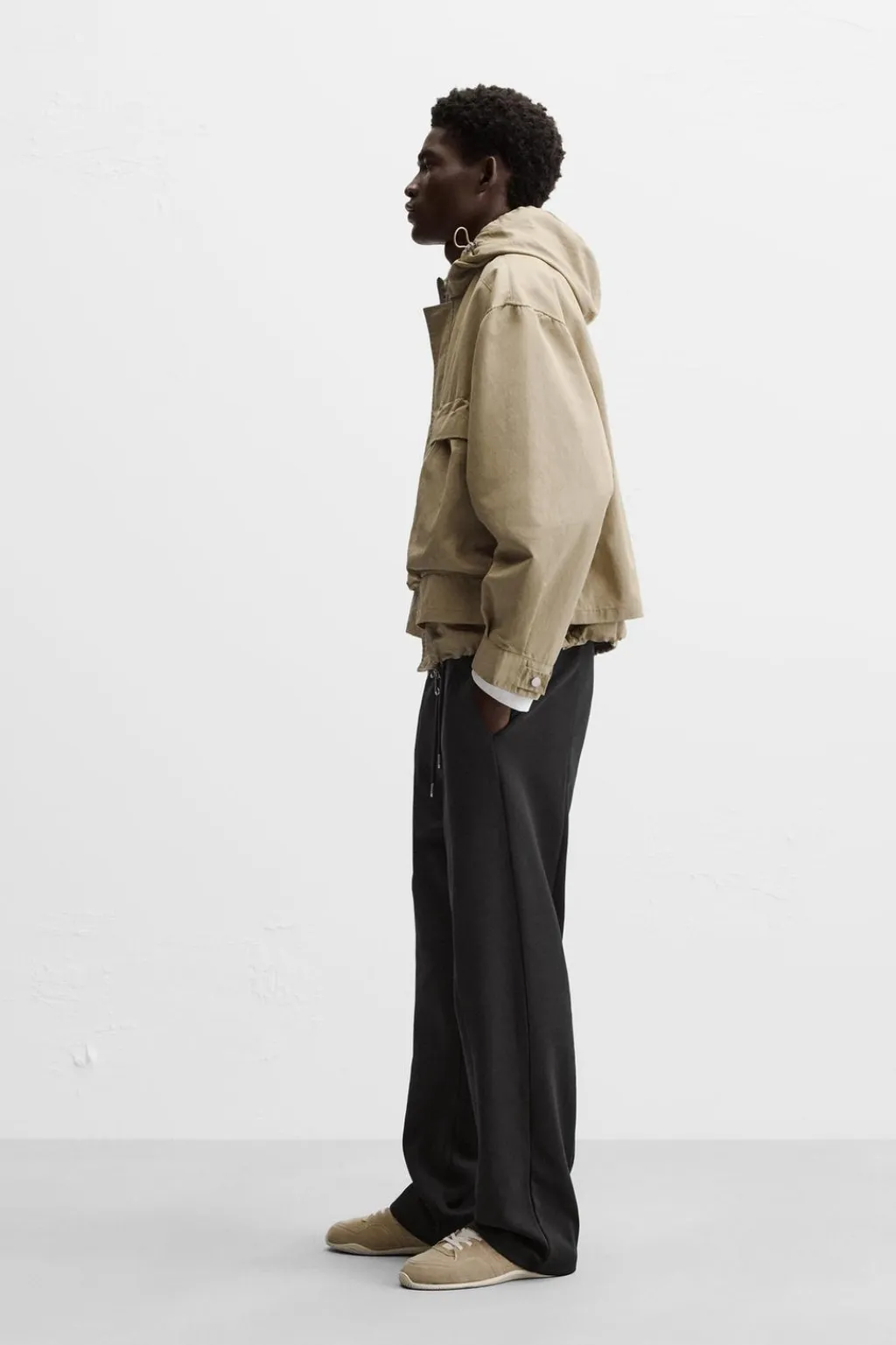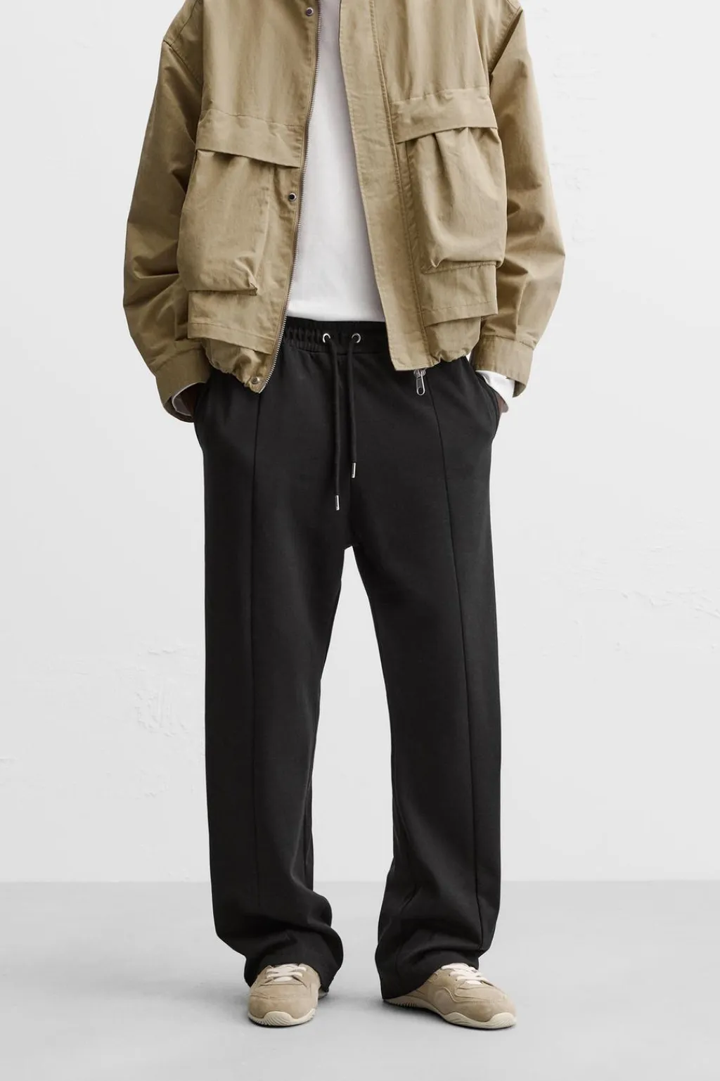 Pantalón relaxed fit. Cintura elástica ajustable con cordón. Bolsillos laterales y detalle de bolsillo trasero de plastrón. Perneras con costura frontal.