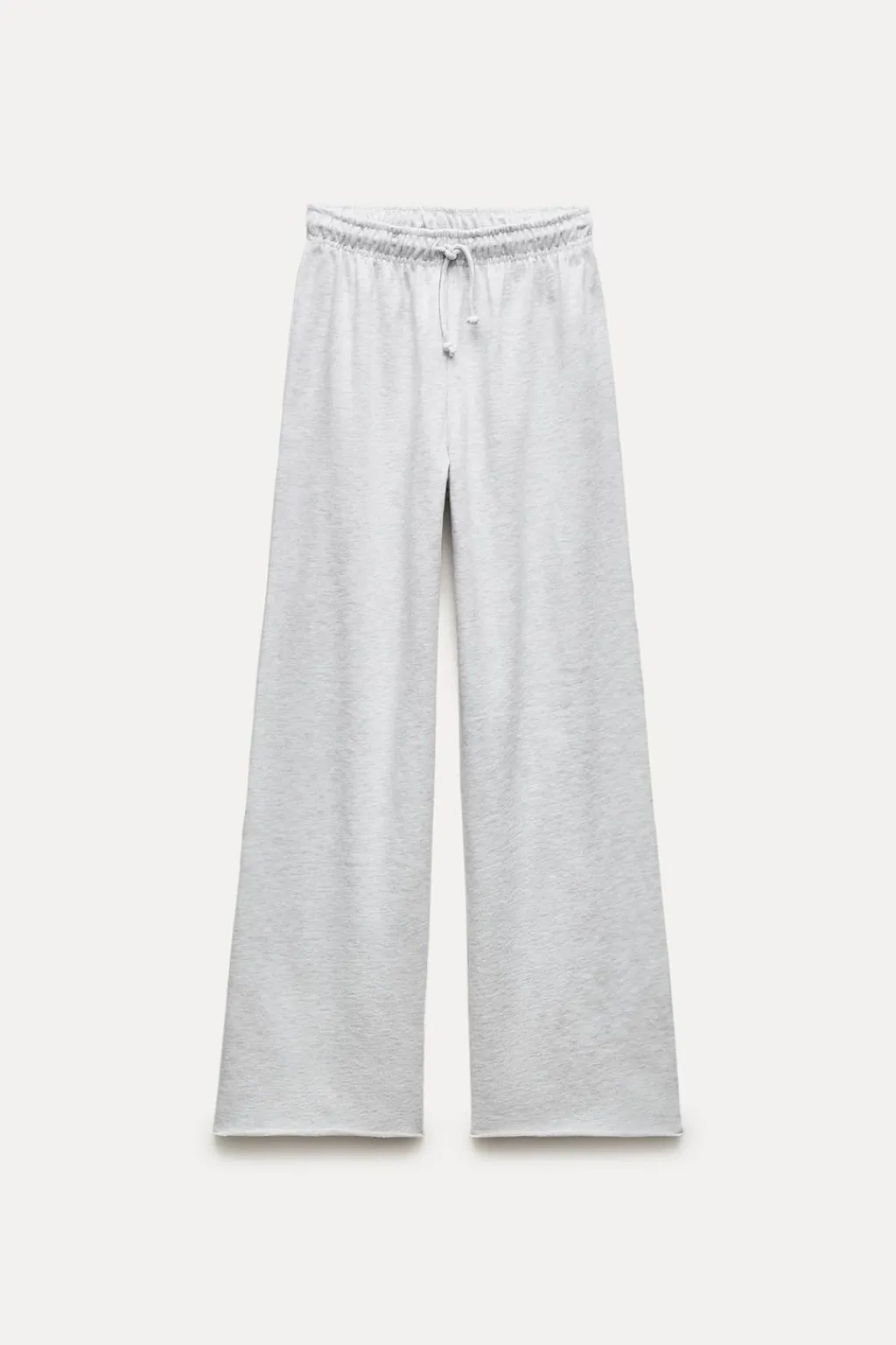Pantalón confeccionado en algodón 100% efecto lavado. Tiro alto con cintura elástica ajustable con cordones. Bajo acabado sin costuras.