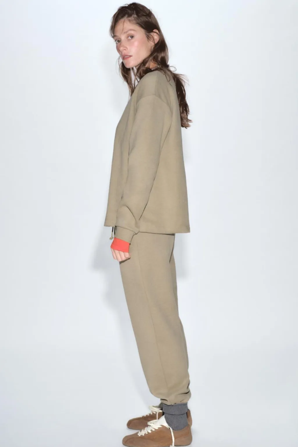 Pantalón de tiro medio y cintura elástica ajustable con cordones. Bolsillos laterales ocultos en costura. Bajo acabado en puño elástico.