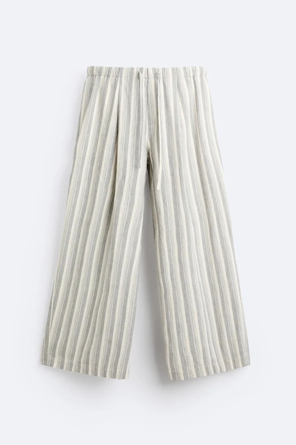 Pantalón wide fit confeccionado en tejido de algodón. Cintura elástica ajustable con cordón y detalle de pliegues frontales. Bolsillo laterales y bolsillo trasero de plastrón.