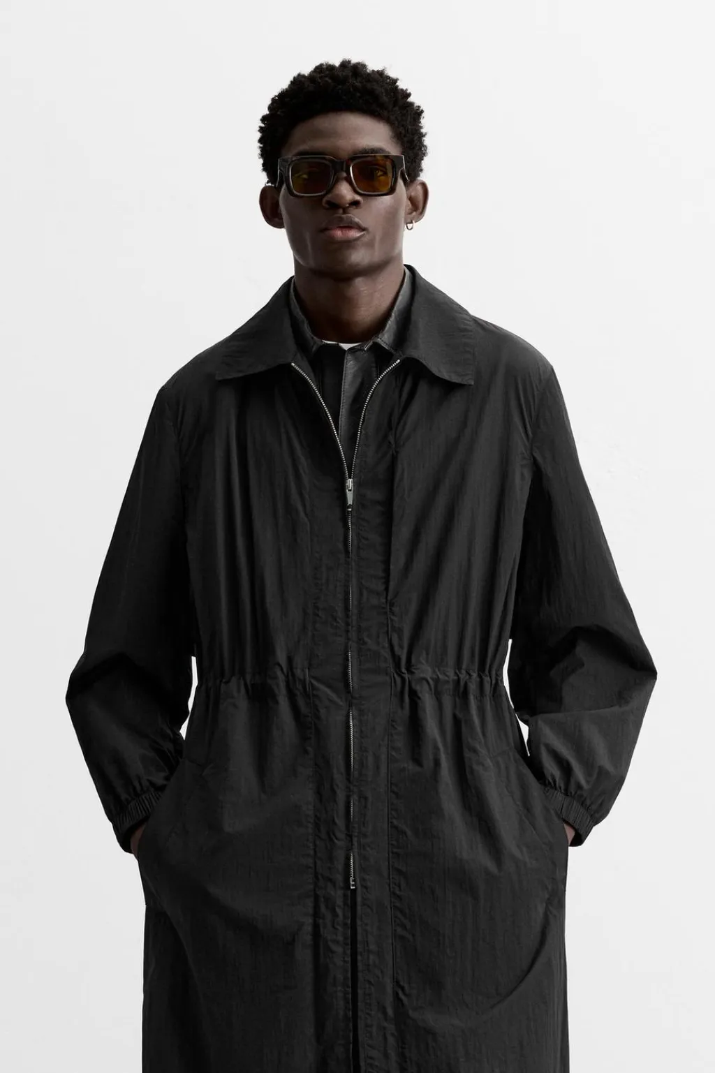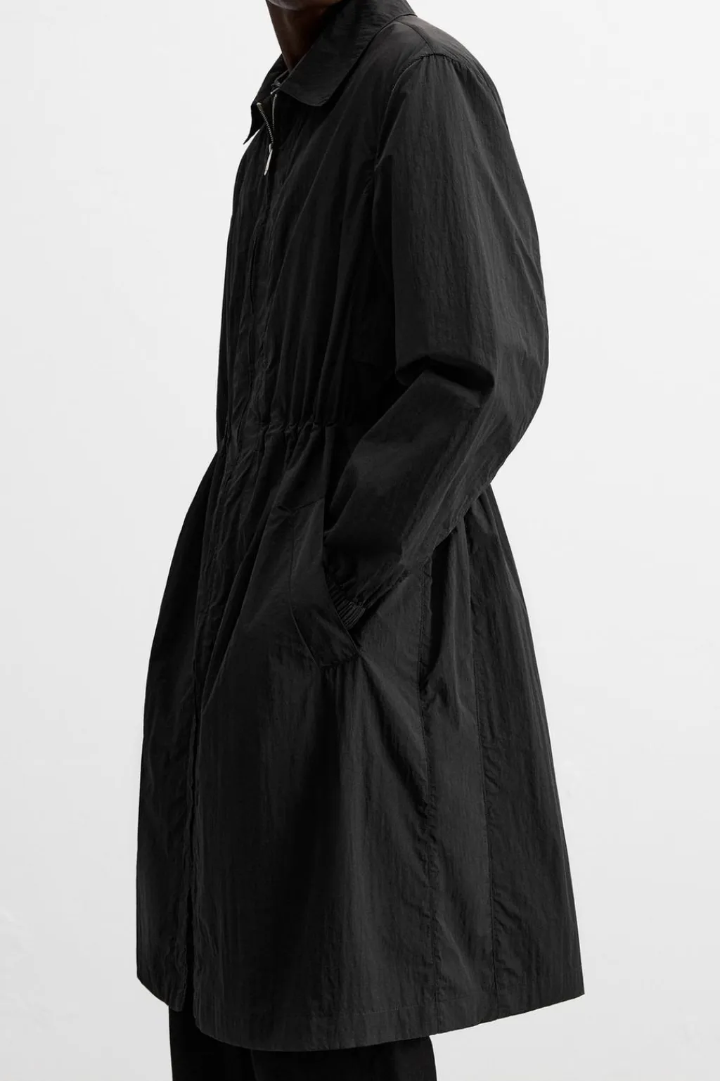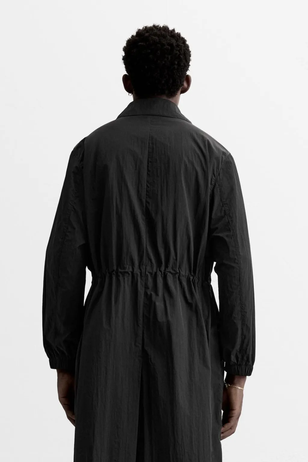 Parka confeccionada en tejido técnico ligero con efecto arrugado. Cuello solapa y manga larga acabada en puño con elástico. Cintura ajustable con elástico en su interior. Bolsillos de vivo en cadera. Bajo con abertura en centro espalda. Cierre frontal con cremallera.