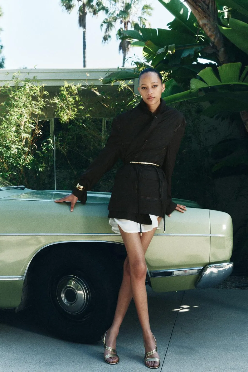 Zapato tipo sandalia de tacón alto y fino con efecto metalizado. Tiras finas en la parte delantera. Cierre mediante hebilla en la pulsera al tobillo.