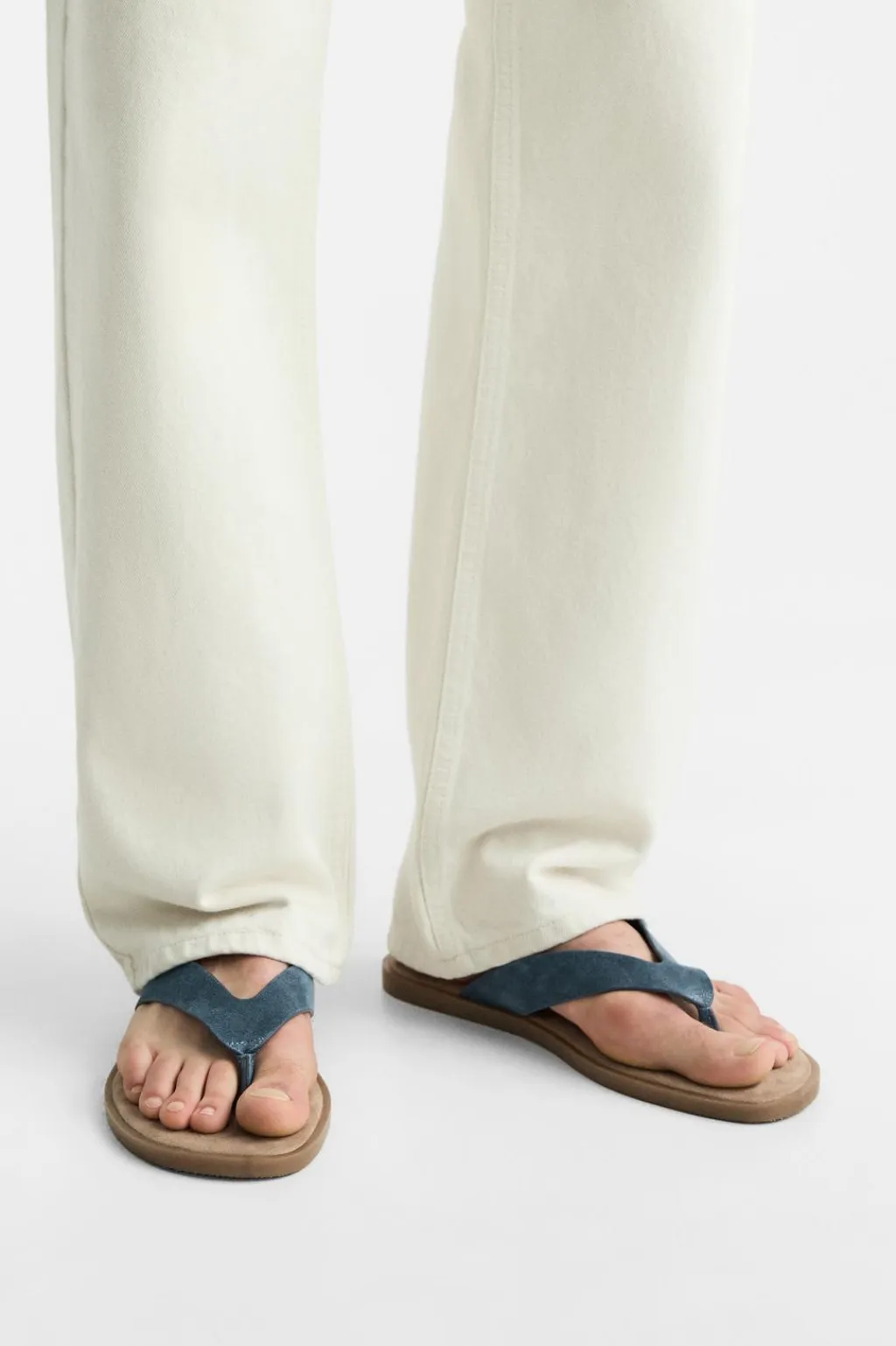 Sandalia con dos tiras, fabricada en piel con acabado serraje. Las tiras abrazan el pie.