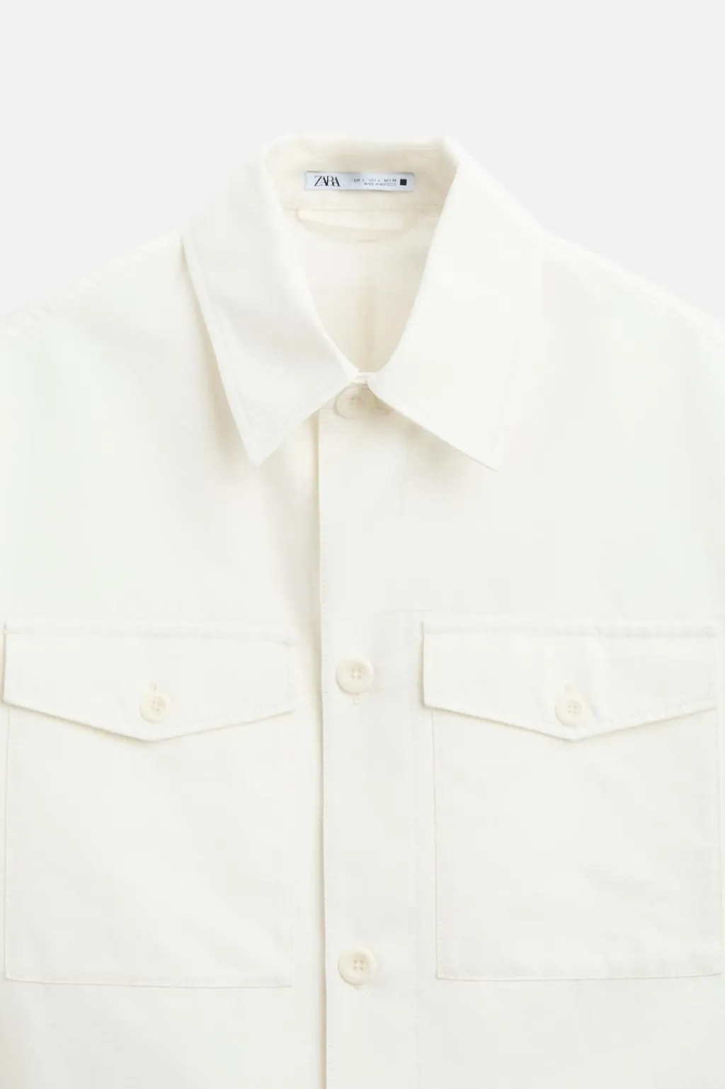 Sobreamisa relaxed fit confeccionada en tejido con algodón y lino. Cuello solapa y manga larga acaba en puño con botón. Bolsillos de plastrón con solapa en pecho y de vivo en cadera. Cierre frontal de botonadura.