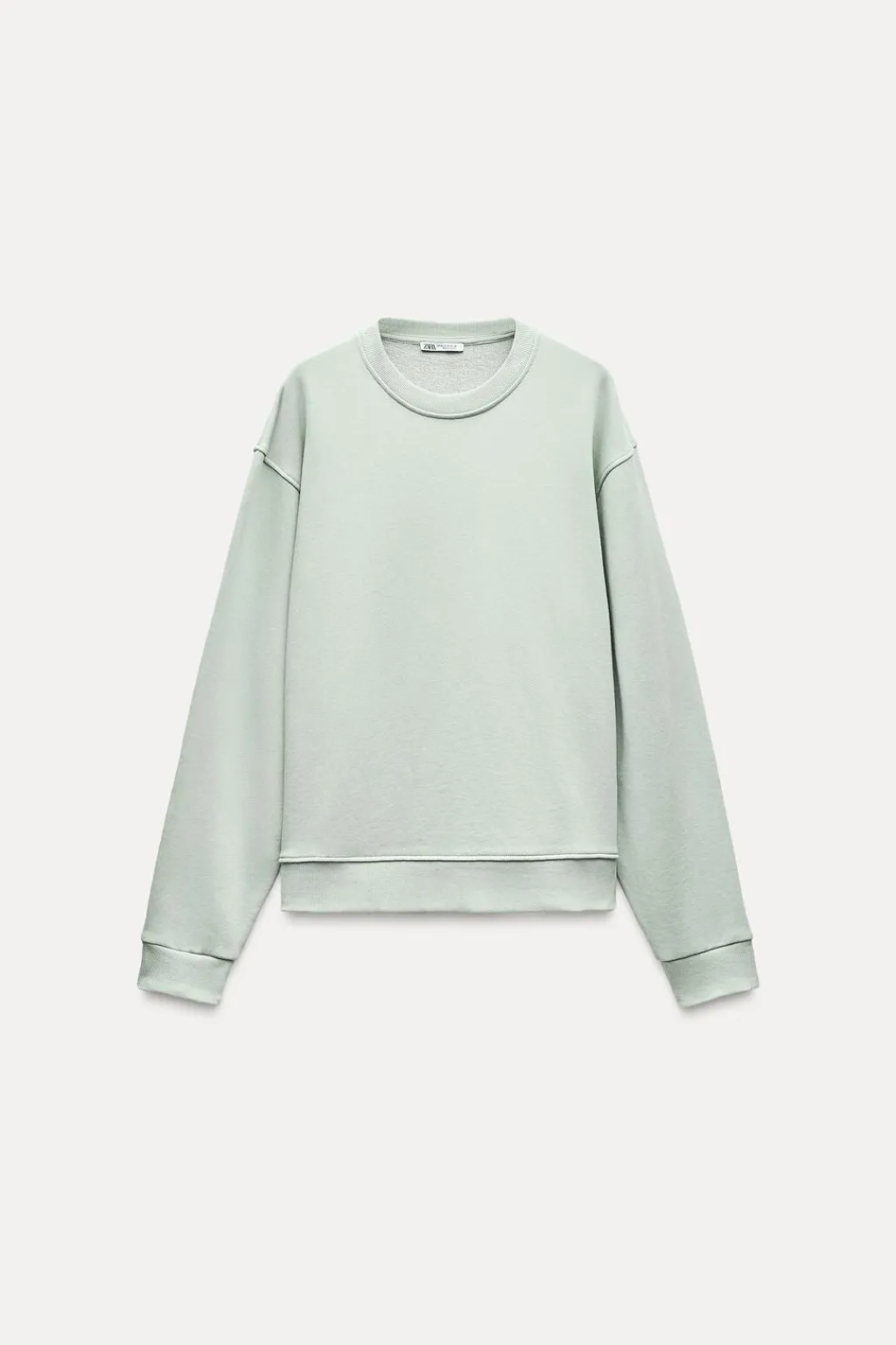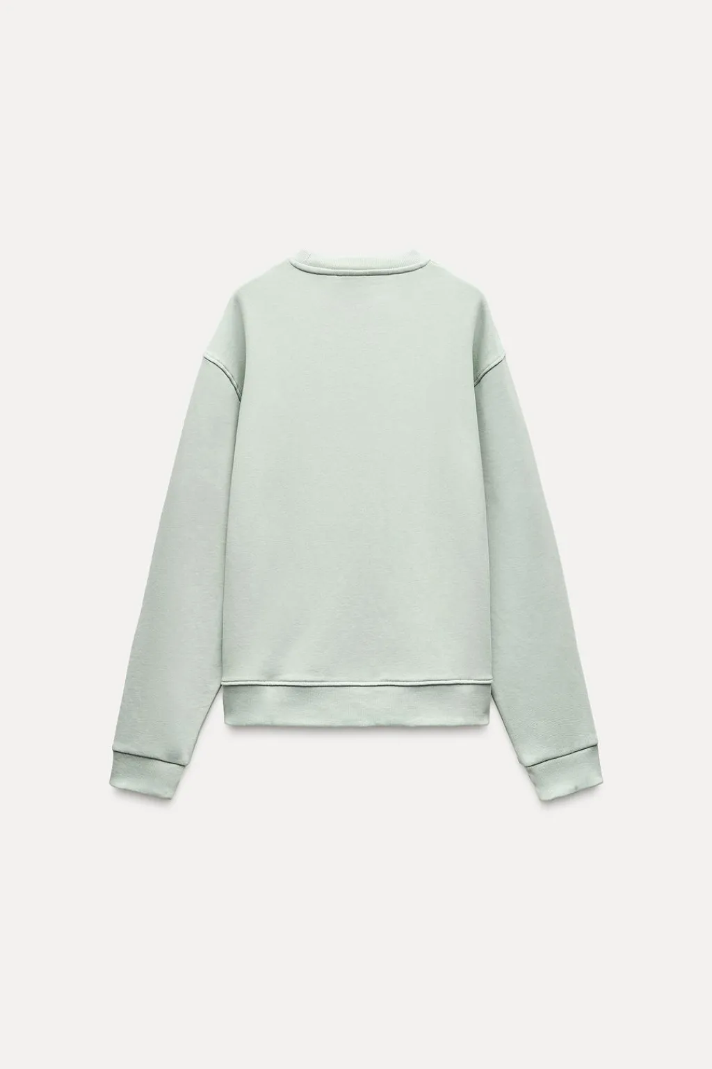 Sudadera de cuello redondo y manga larga con hombro caído. Acabados en rib a tono.