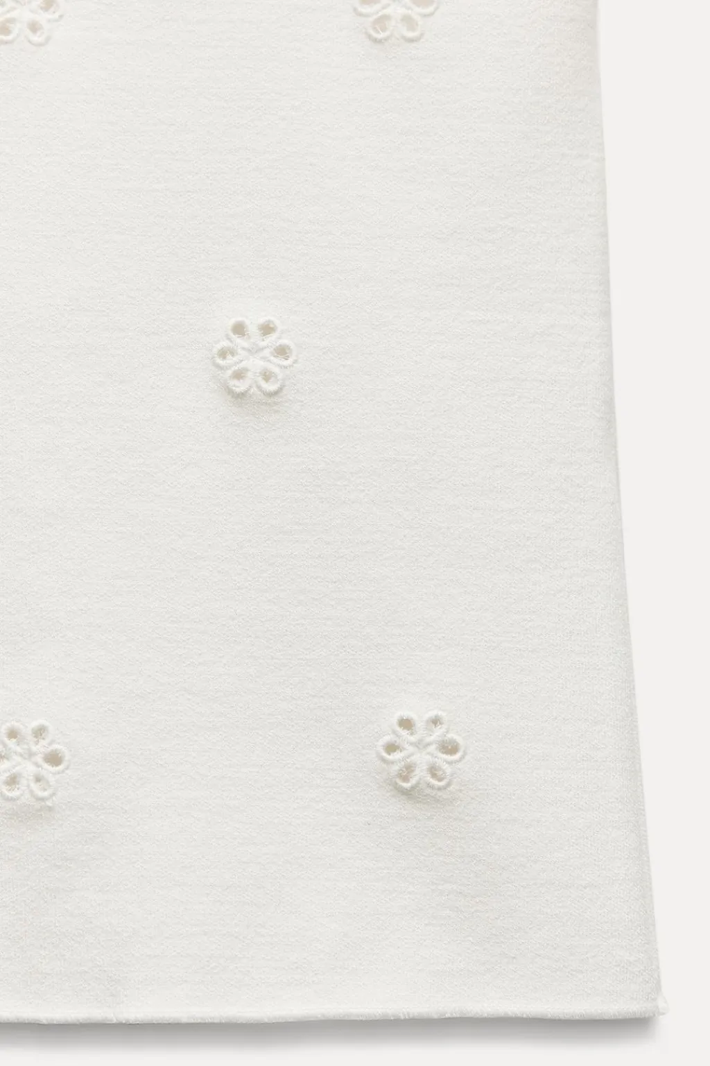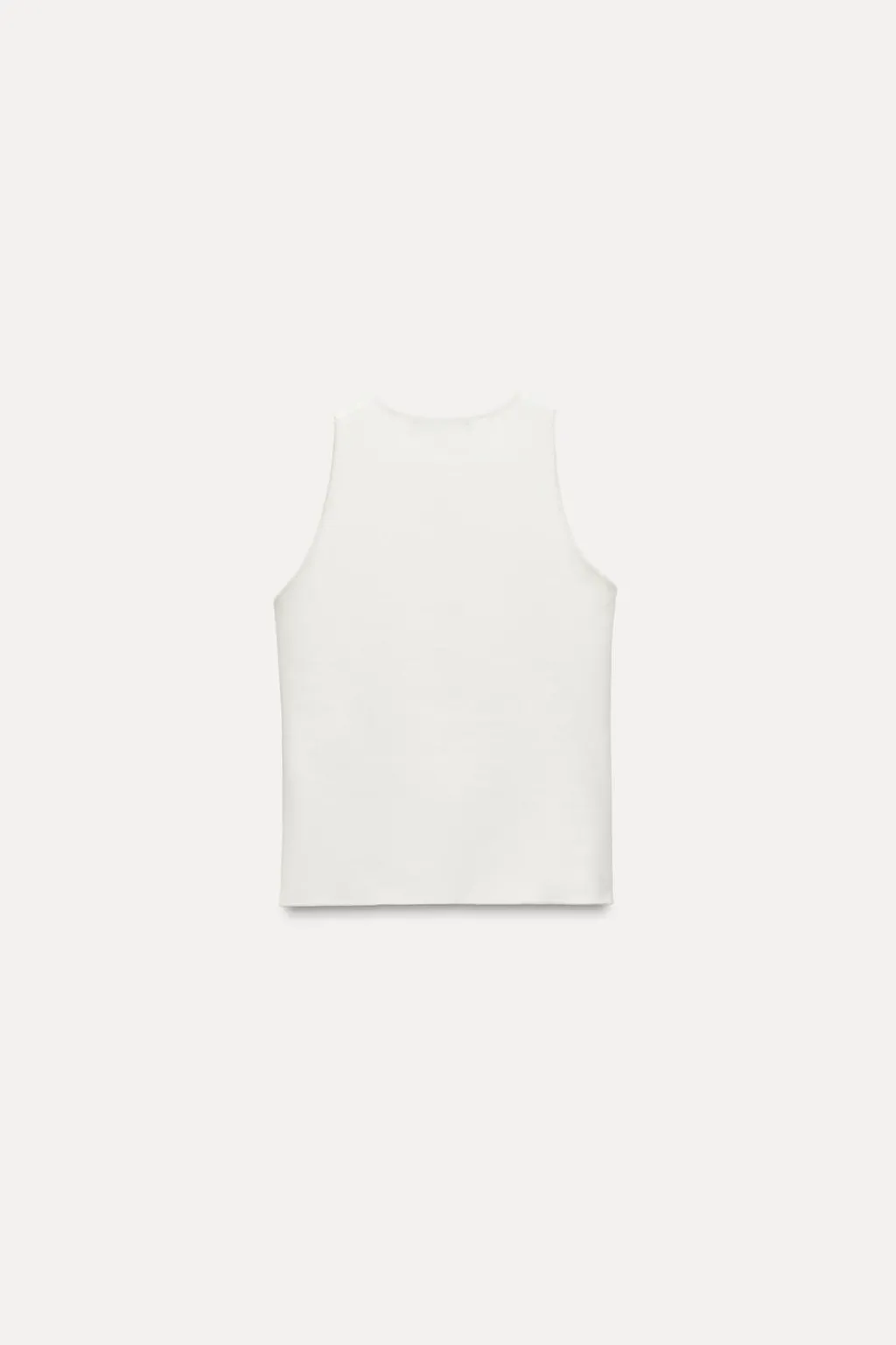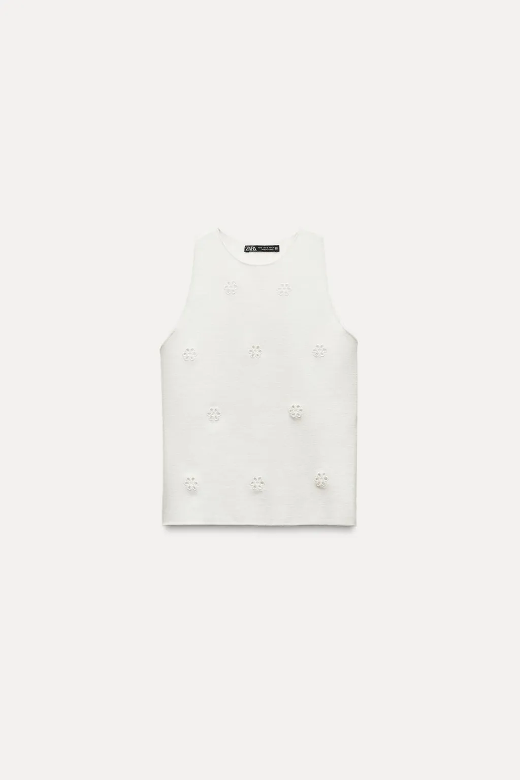 Top entallado confeccionado en tejido tipo punto. Cuello halter. Detalle de bordados perforados.