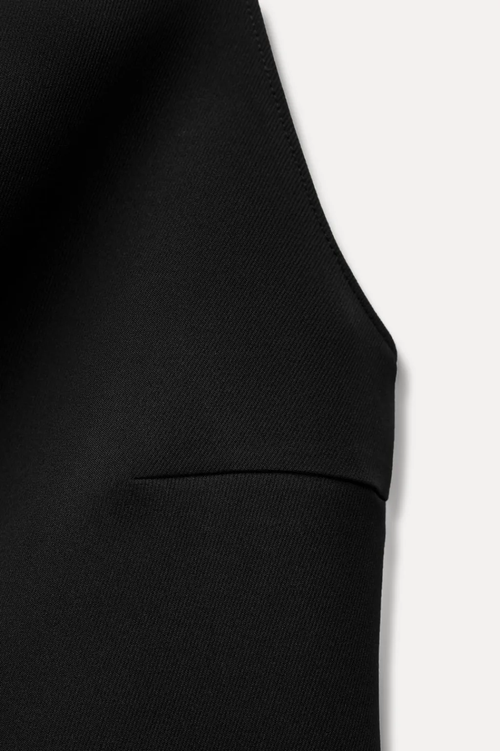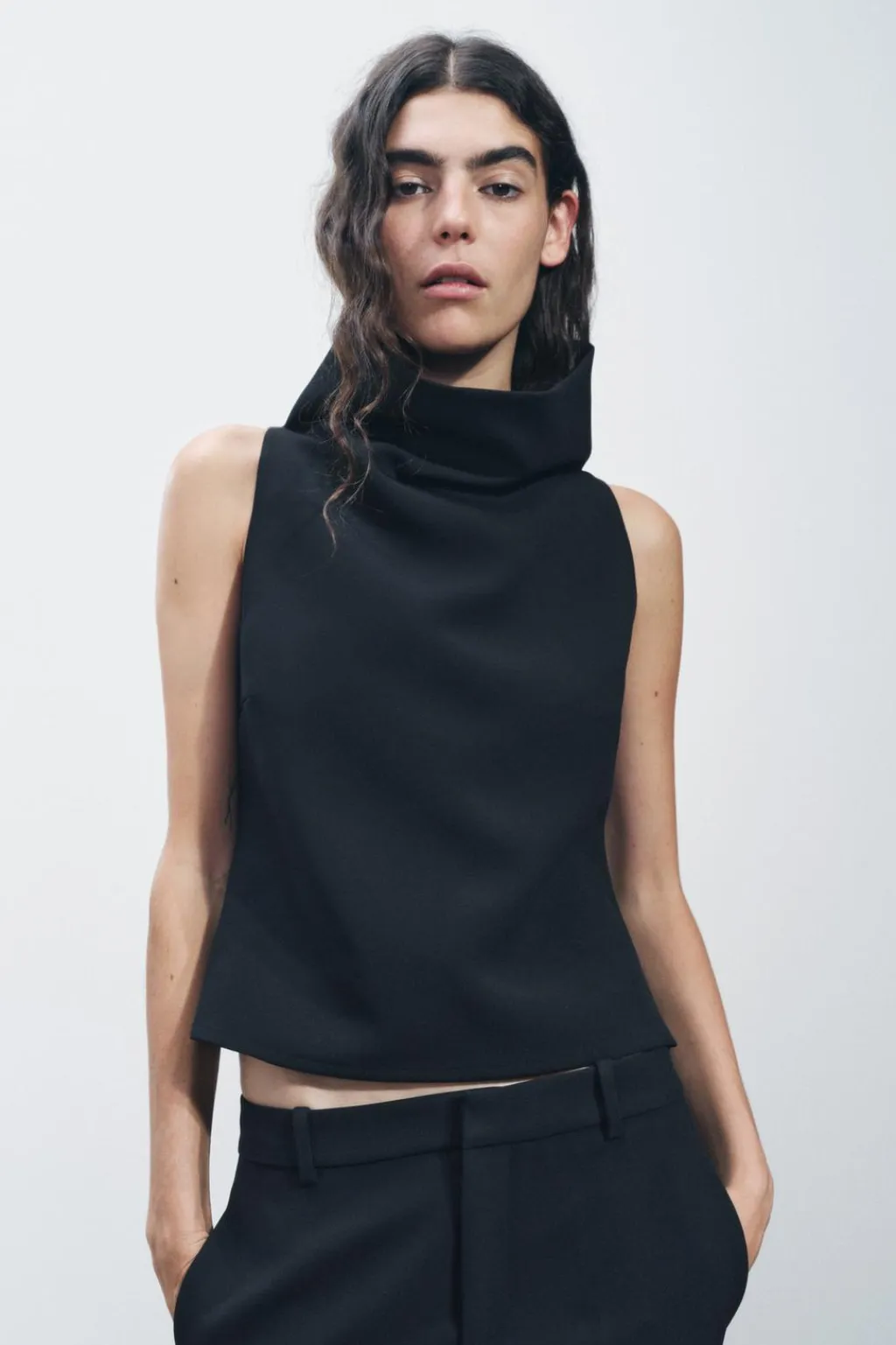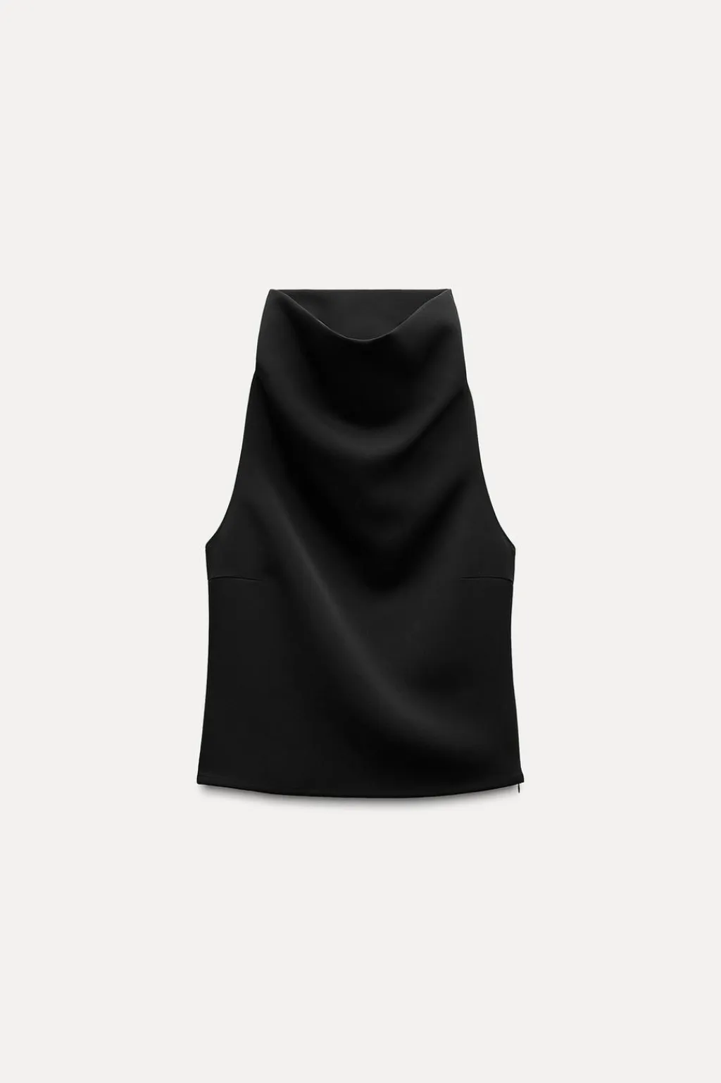 Top de cuello alto y manga sisa. Cierre lateral con cremallera oculta en costura.