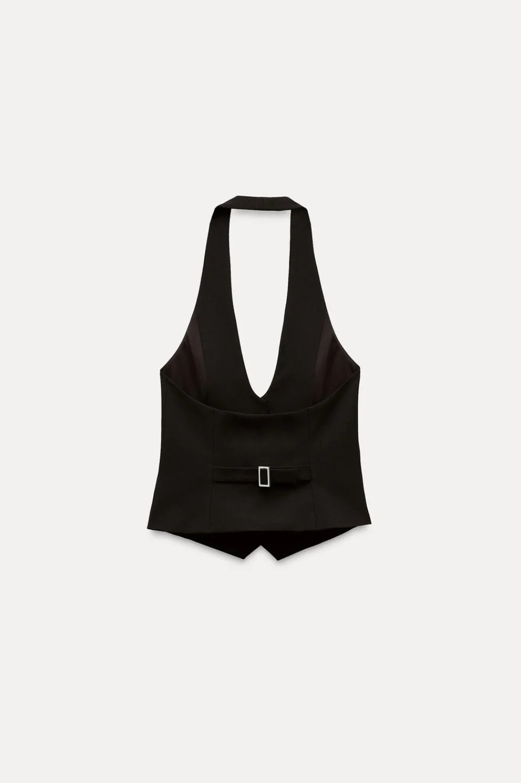 Top de cuello halter y escote pico. Falsos bolsillos de vivo en delantero. Detalle de trabilla ajustable en espalda. Forro interior. Cierre frontal con botones.