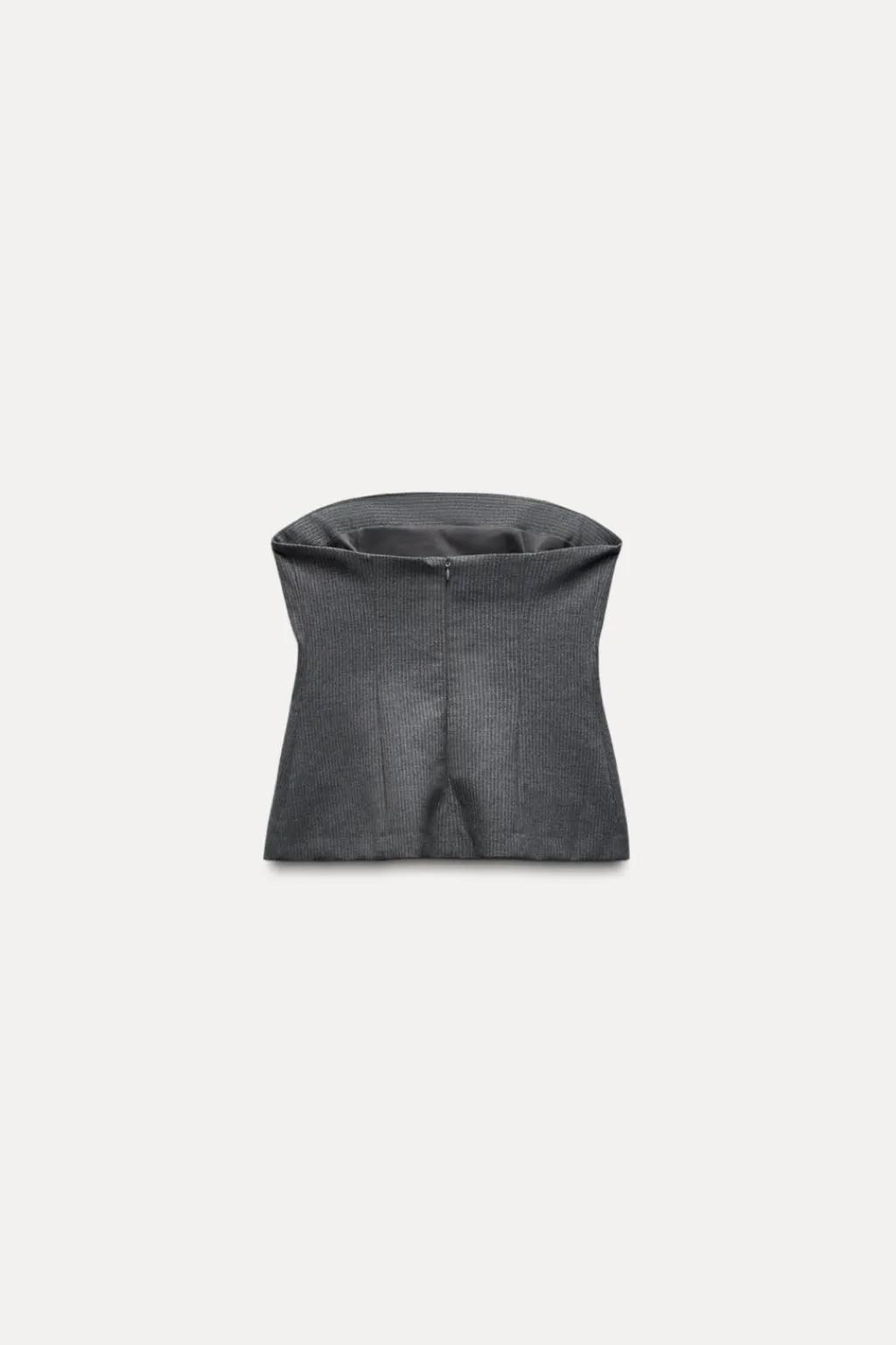 Top entallado de escote recto y hombros descubiertos. Forro interior. Cierre en espalda con cremallera oculta en costura.