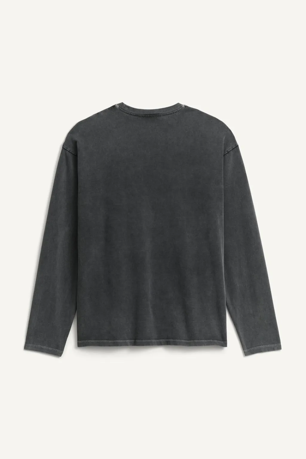 Camiseta relaxed fit confeccionada en algodón compacto. Cuello redondo y manga larga. Detalle de logo bordado en el bajo. Efecto lavado.
