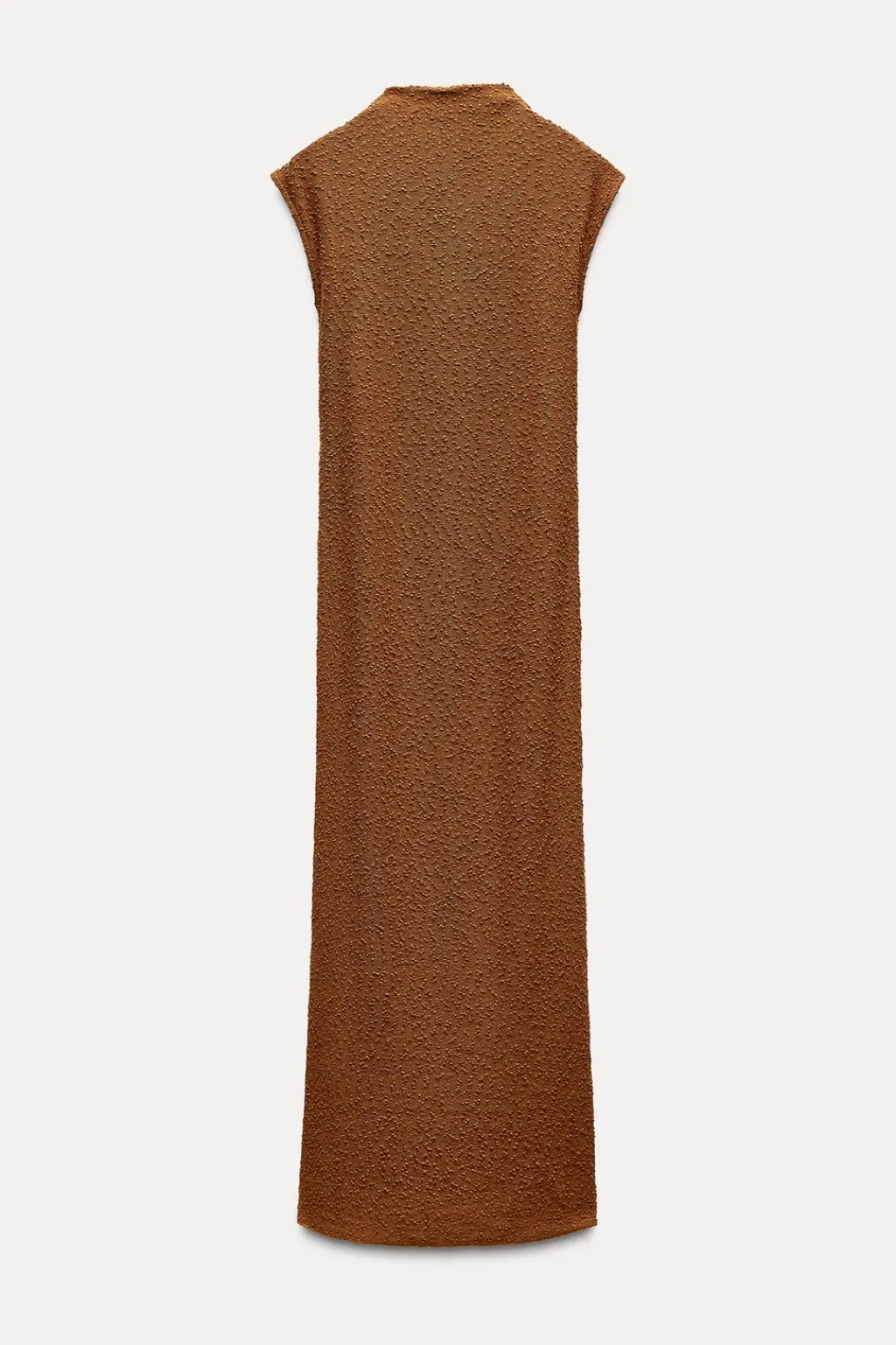 Vestido largo de cuello alto y manga sisa.