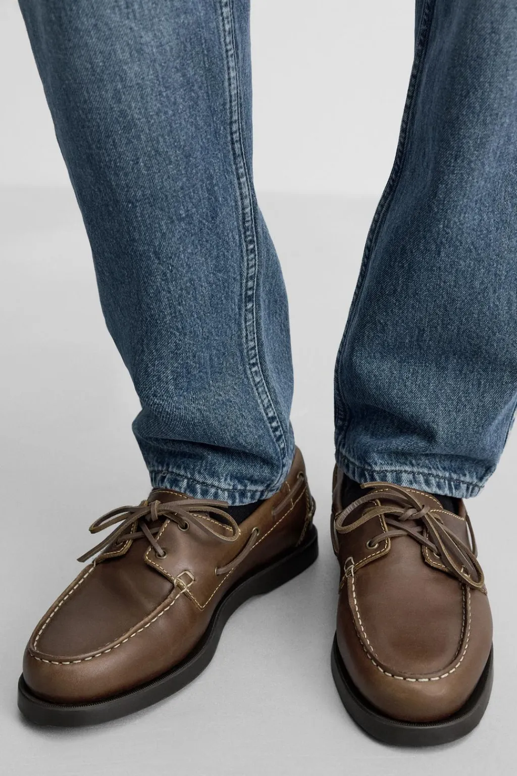 Zapato tipo náutico. Construcción en piel. Horma redonda.