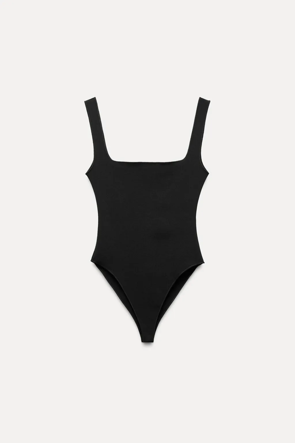 Body entallado confeccionado en tejido elástico de escote cuadrado y tirantes. Cierre en bajo con botones a presión.