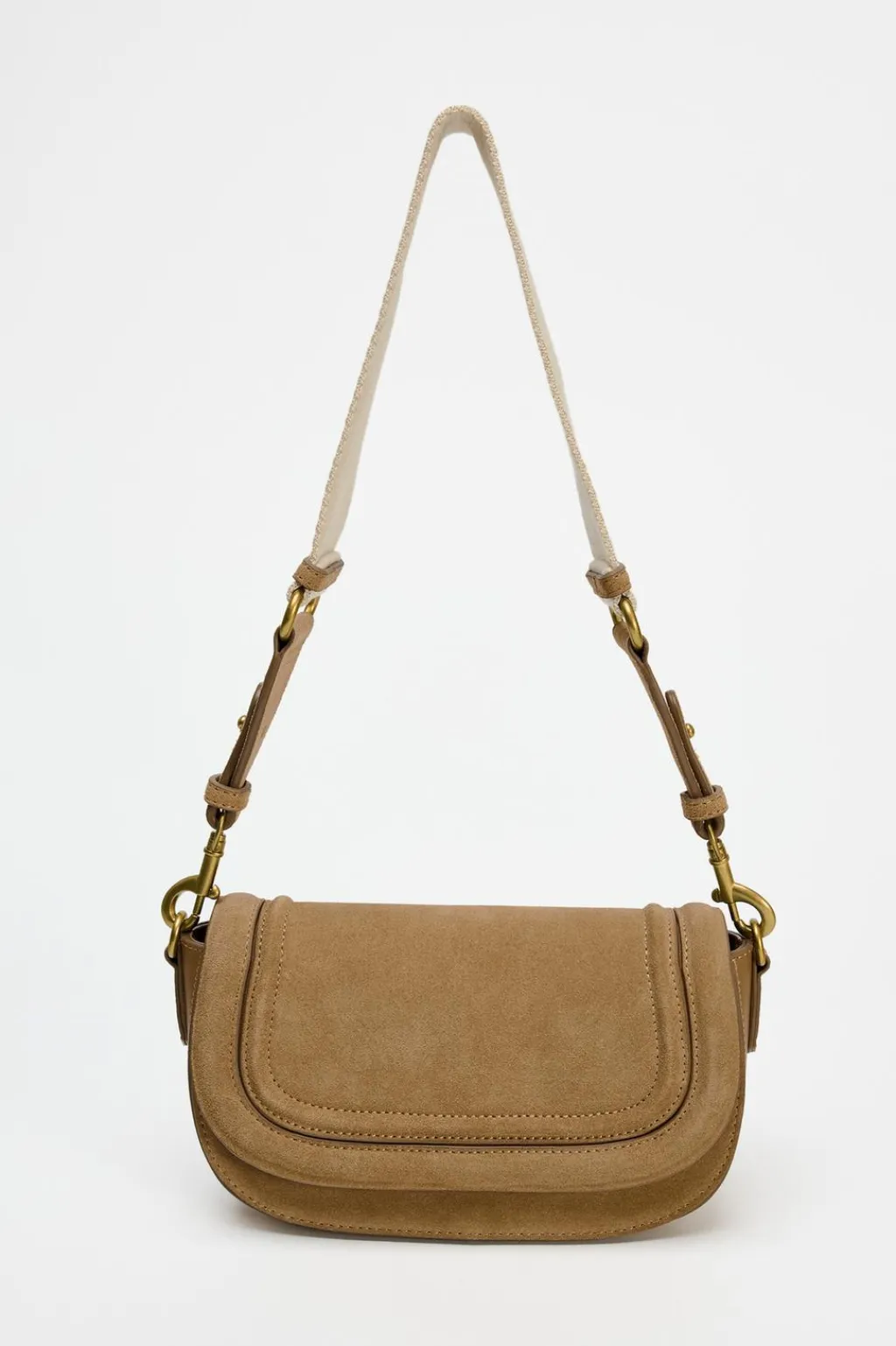 Bolso formato bandolera en serraje. Asas extraíbles y ajustables, una de hombro en tejido tipo canvas y otra función bandolera. Cierre mediante imán.