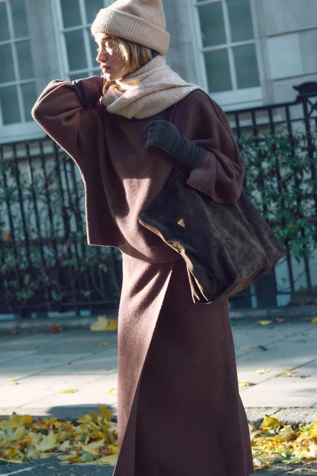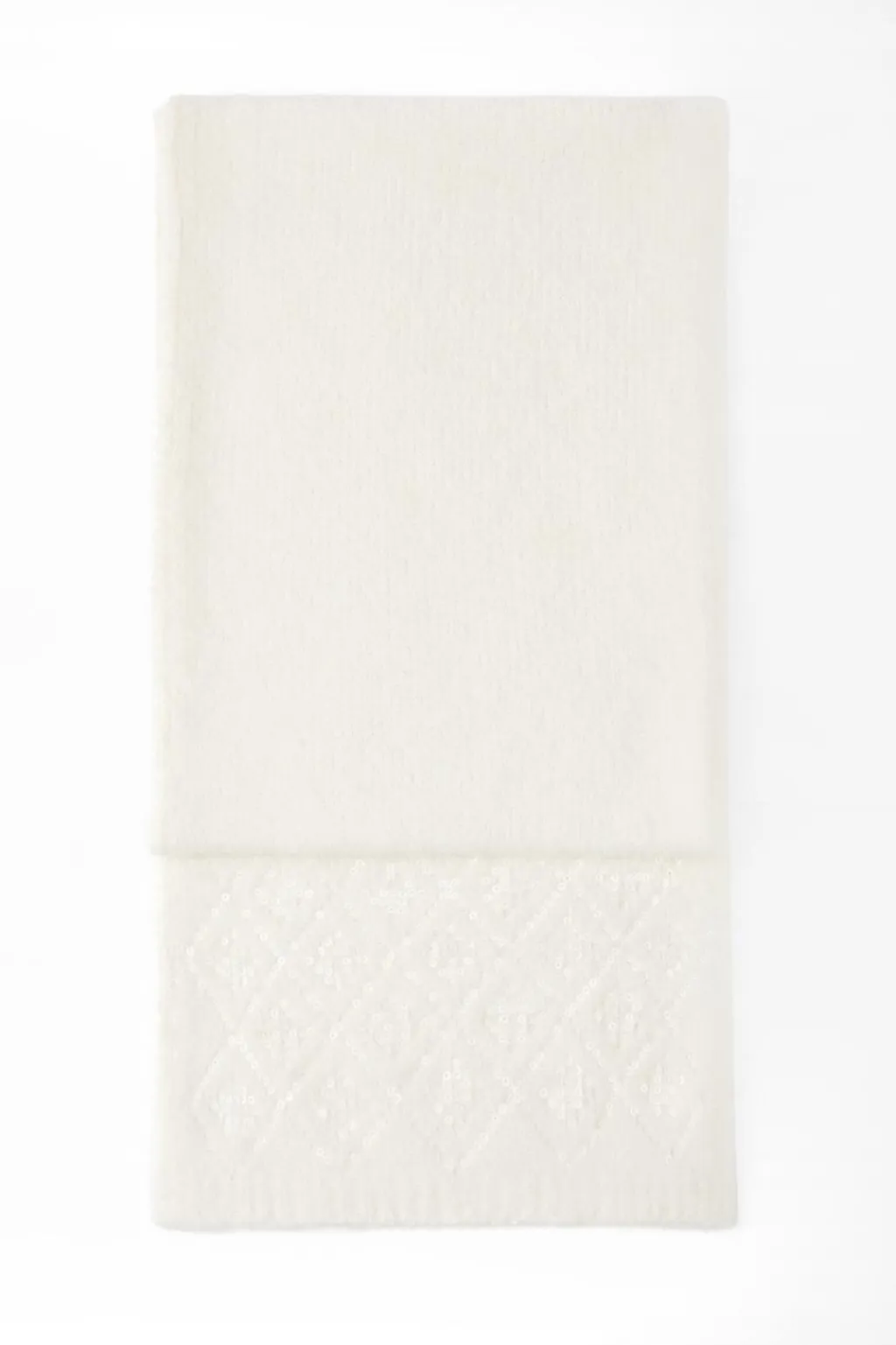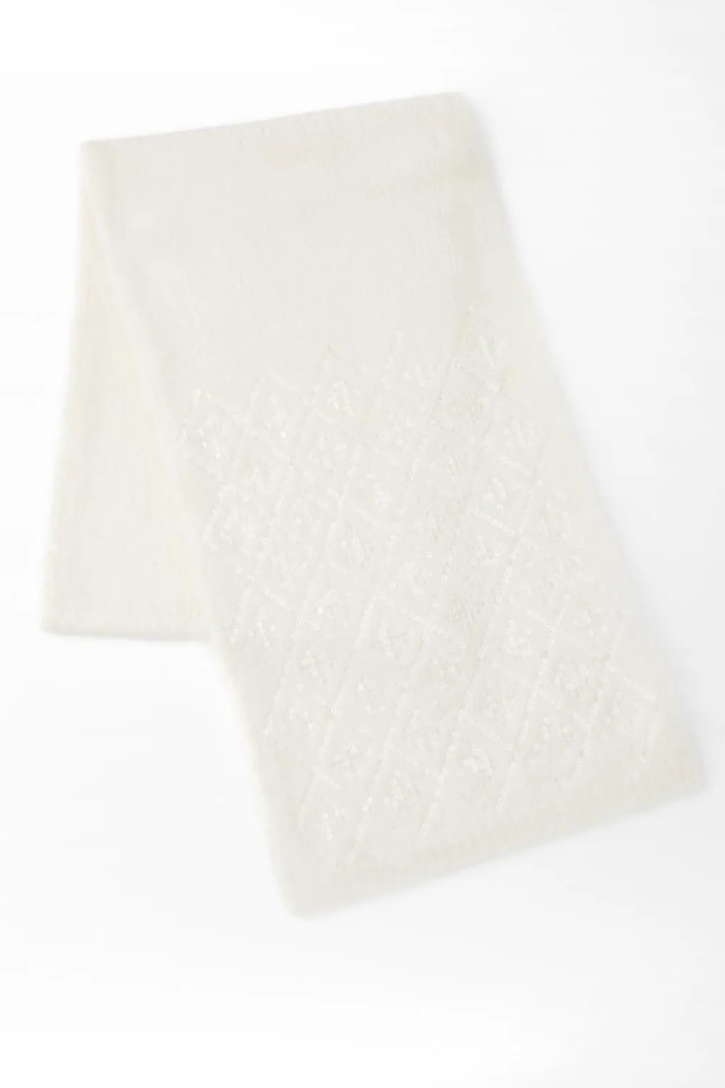 Bufanda confeccionada en mezcla de tejidos y alpaca 21%. Detalle aplicación de lentejuelas combinadas a tono.