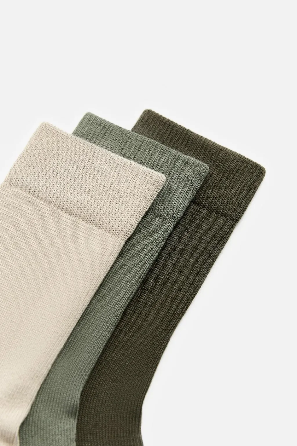 Pack de tres pares de calcetines tejidos en hilatura de algodón ligero. Acabado en rib