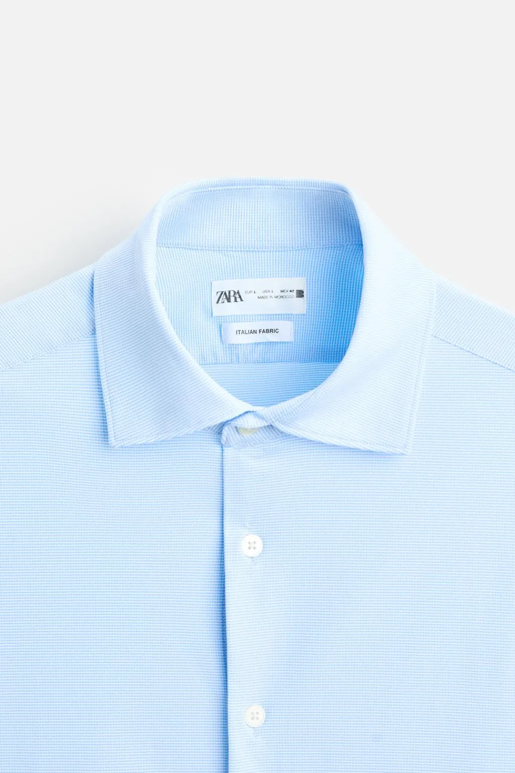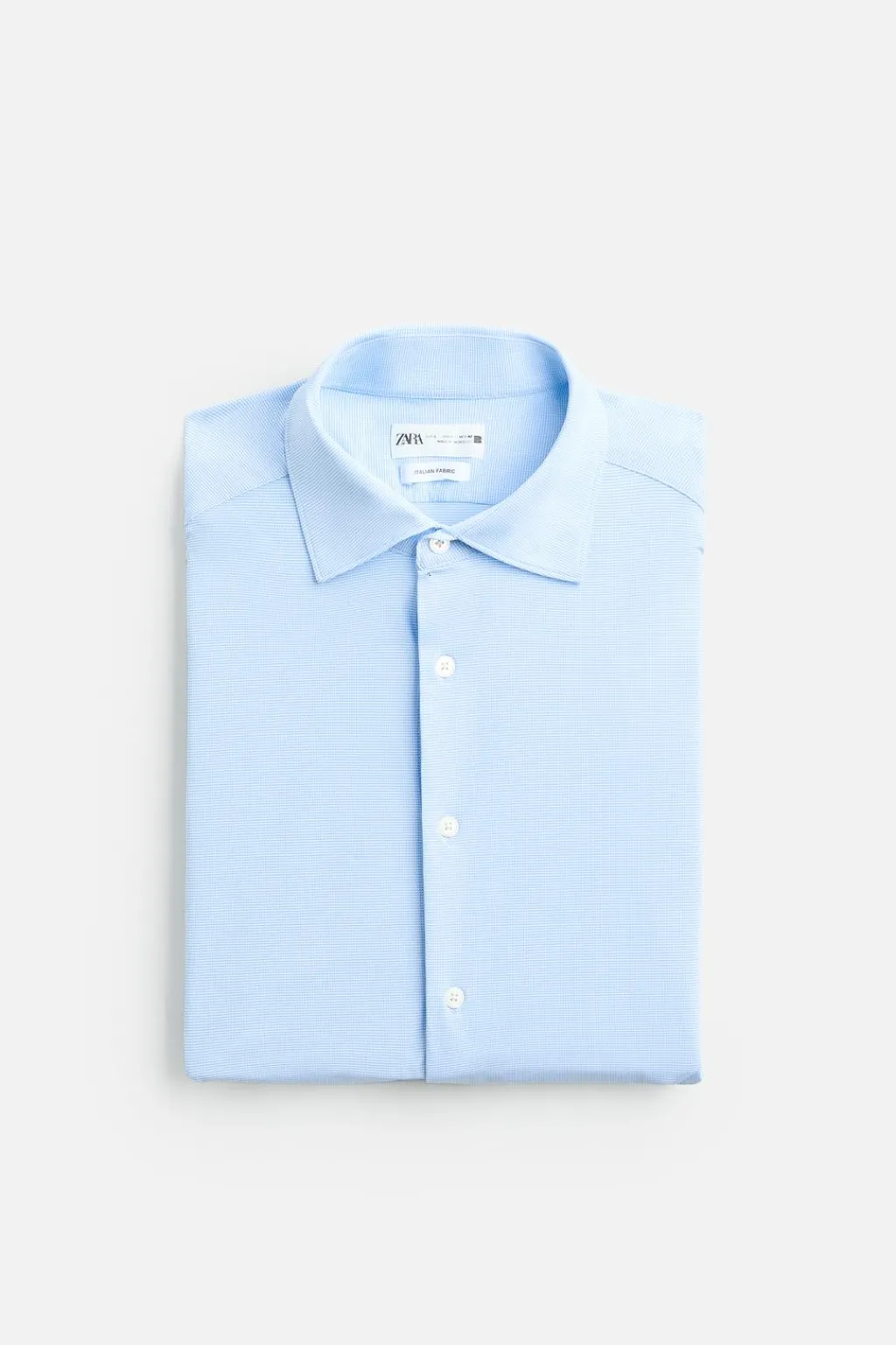Camisa slim fit confeccionada en un tejido que minimiza la necesidad de plancha después del lavado. Cuello italiano abierto y manga larga acabada en puño con botón. Cierre frontal de botonadura.