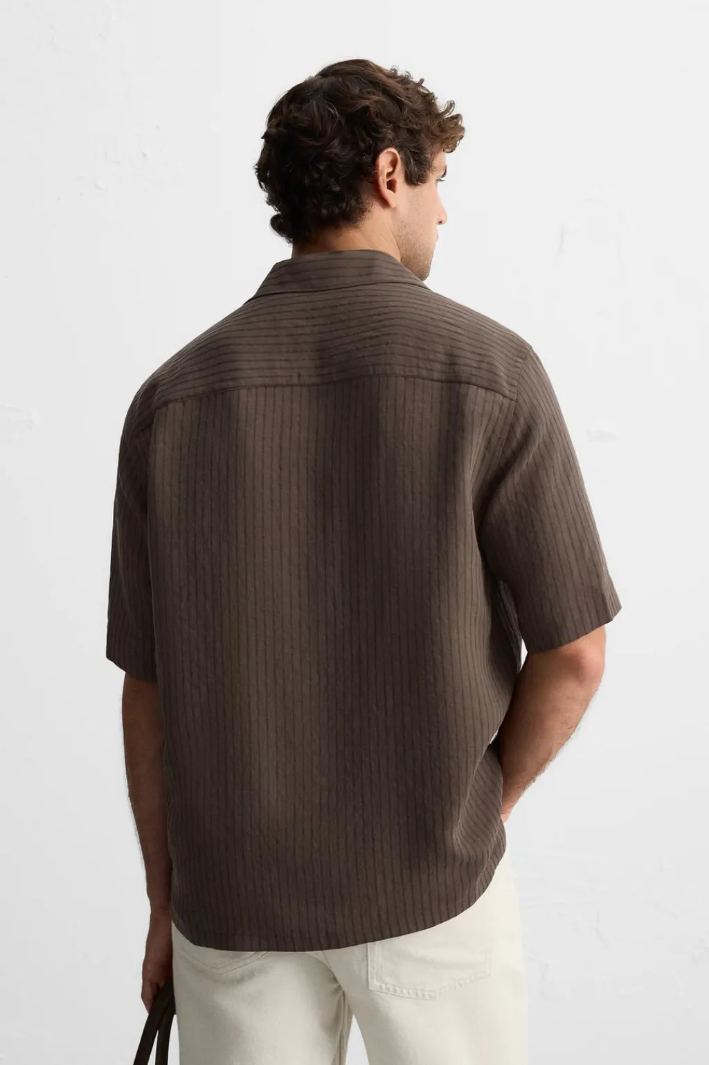 Camisa relaxed fit confeccionada en tejido con modal. Cuello bowling y manga corta. Bajo con aberturas laterales. Cierre frontal de botonadura.