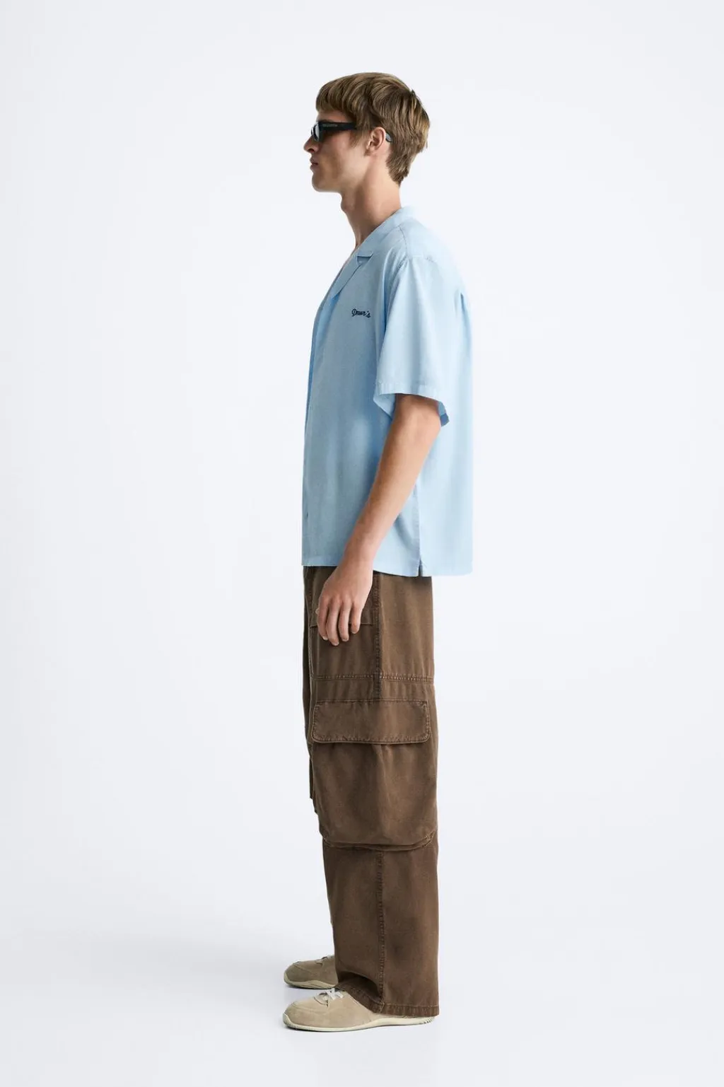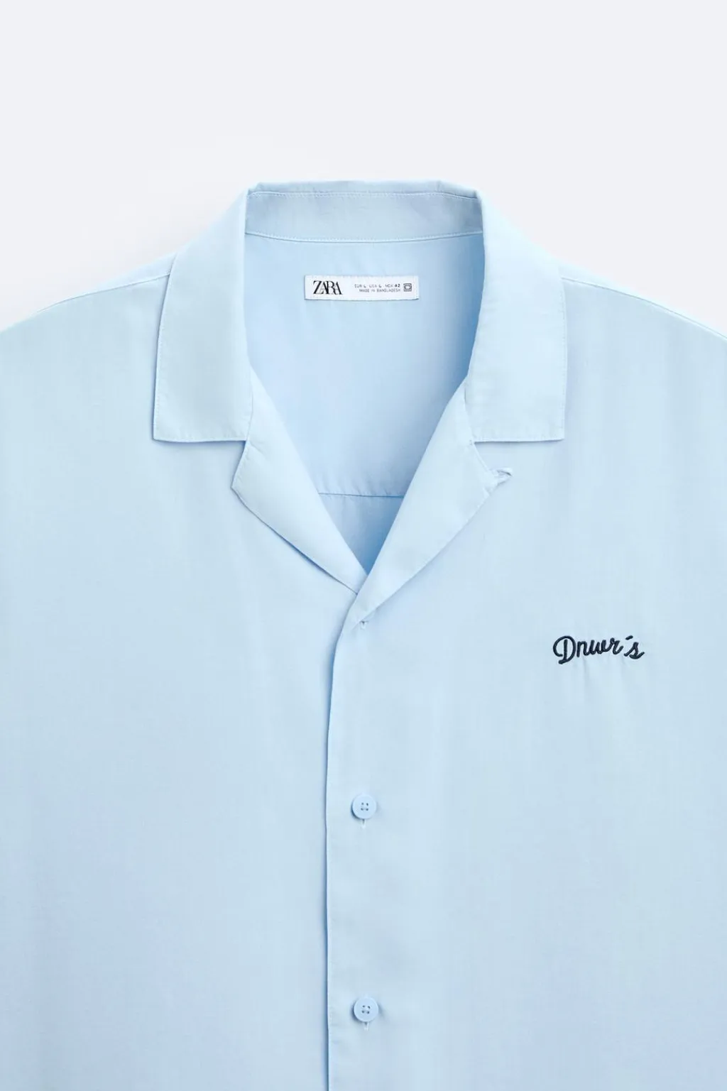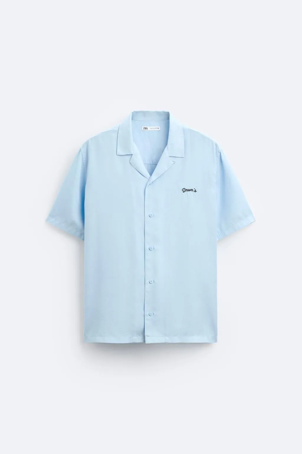 Camisa relaxed fit confeccionada en tejido de lyocell. Cuello bowling y manga corta. Detalle de bordado combinado a contraste en pecho. Cierre frontal de botonadura.