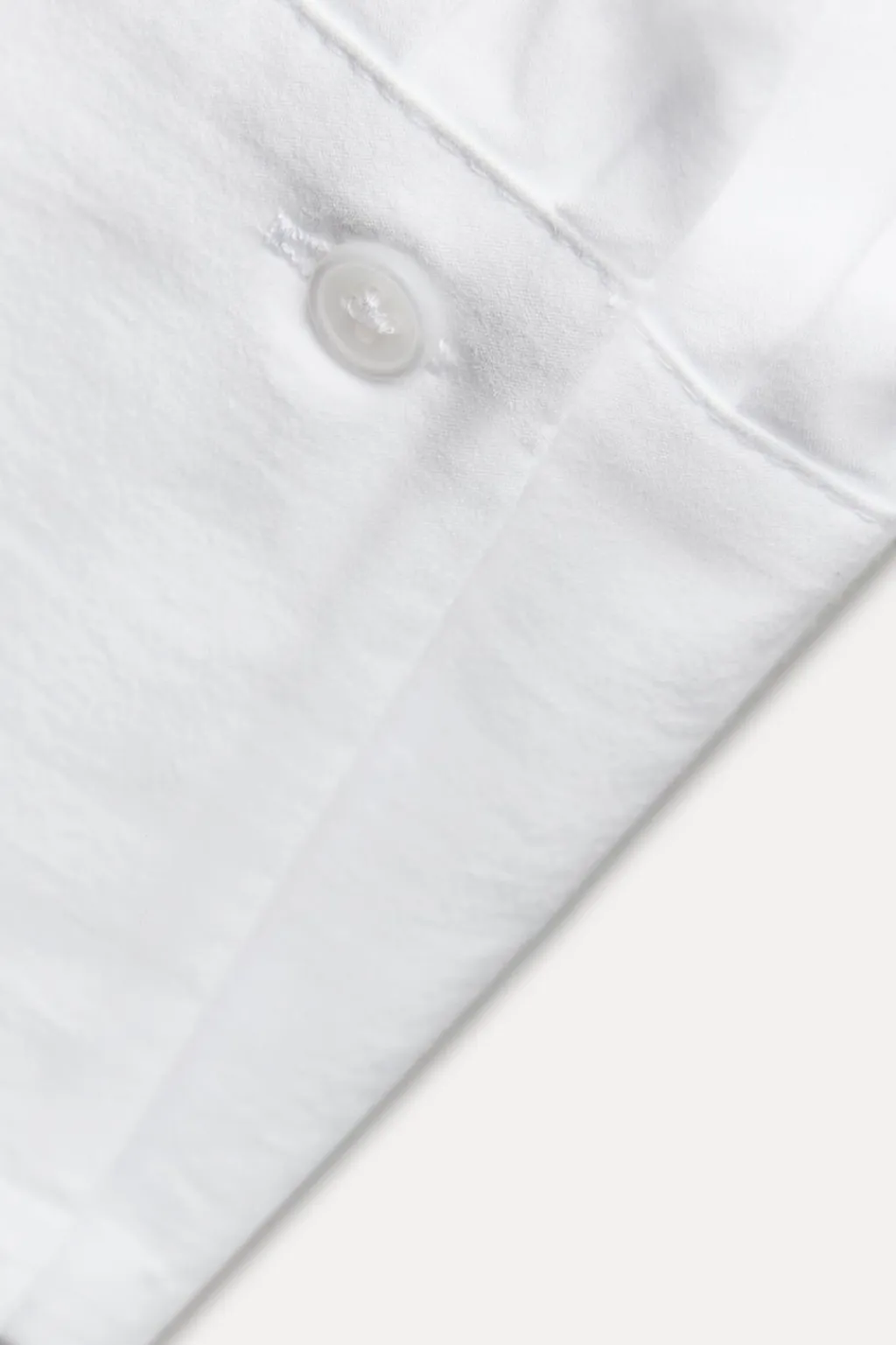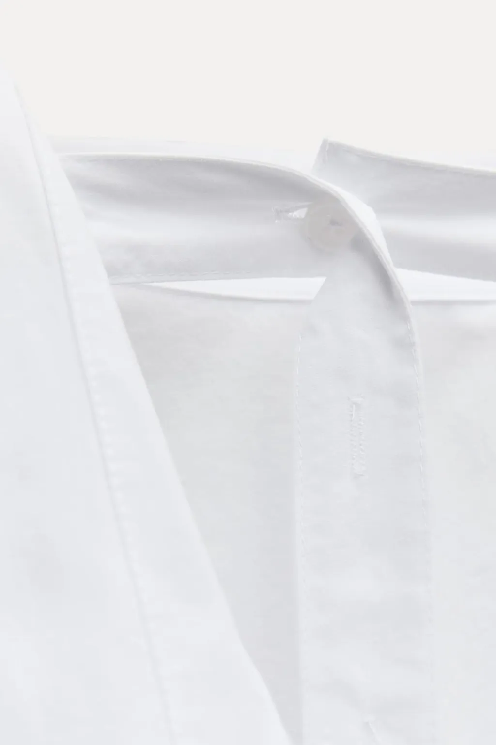 Camisa confeccionada en hilatura de algodón 100%. Cuello con vuelta y tira en mismo tejido ajustable con botones. Manga larga acabada en puño con abertura y botones. Bajo asimétrico redondeado. Cierre en espalda con botones.