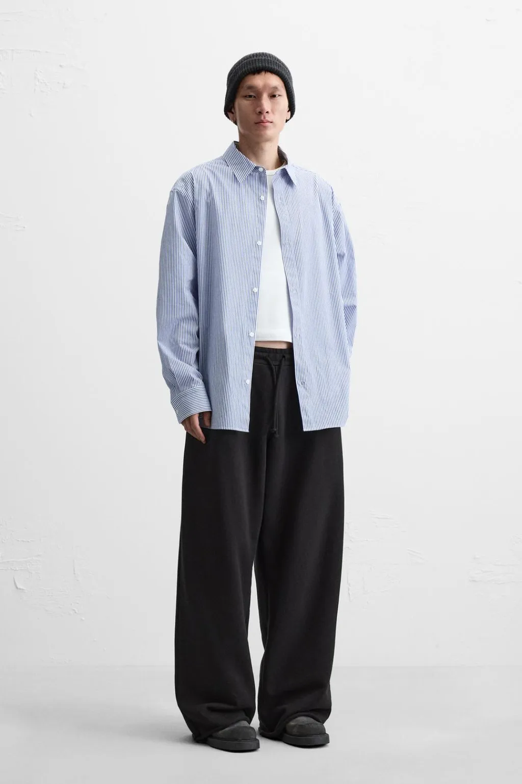 Camisa relaxed fit confeccionada en tejido de algodón. Cuello solapa y manga larga acabada en puño con botón. Cierre frontal de botonadura.