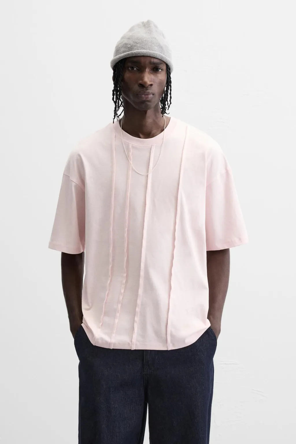 Camiseta relaxed fit. Cuello redondo y manga corta. Detalle de costuras efecto revés en delantero.