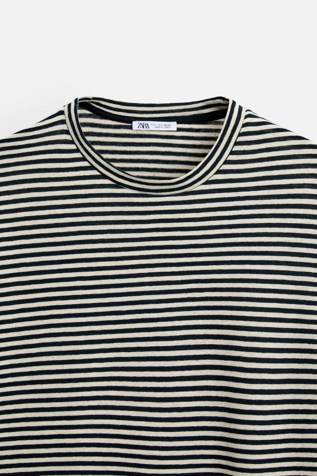 Camiseta confeccionada en tejido con mezcla de algodón y lino. Cuello redondo y manga corta.