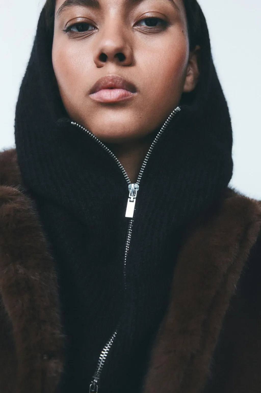 Capucha en canalé confeccionadas con 9% de lana. Cierre con cremallera metálica.