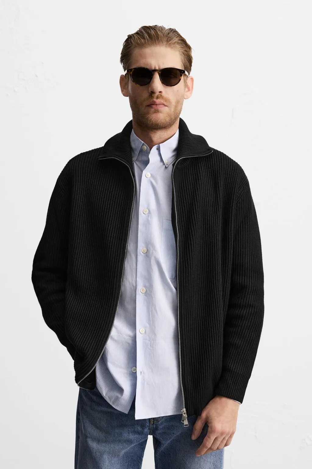 Cárdigan regular fit. Cuello subido y manga larga. Acabados en rib. Cierre frontal de cremallera.