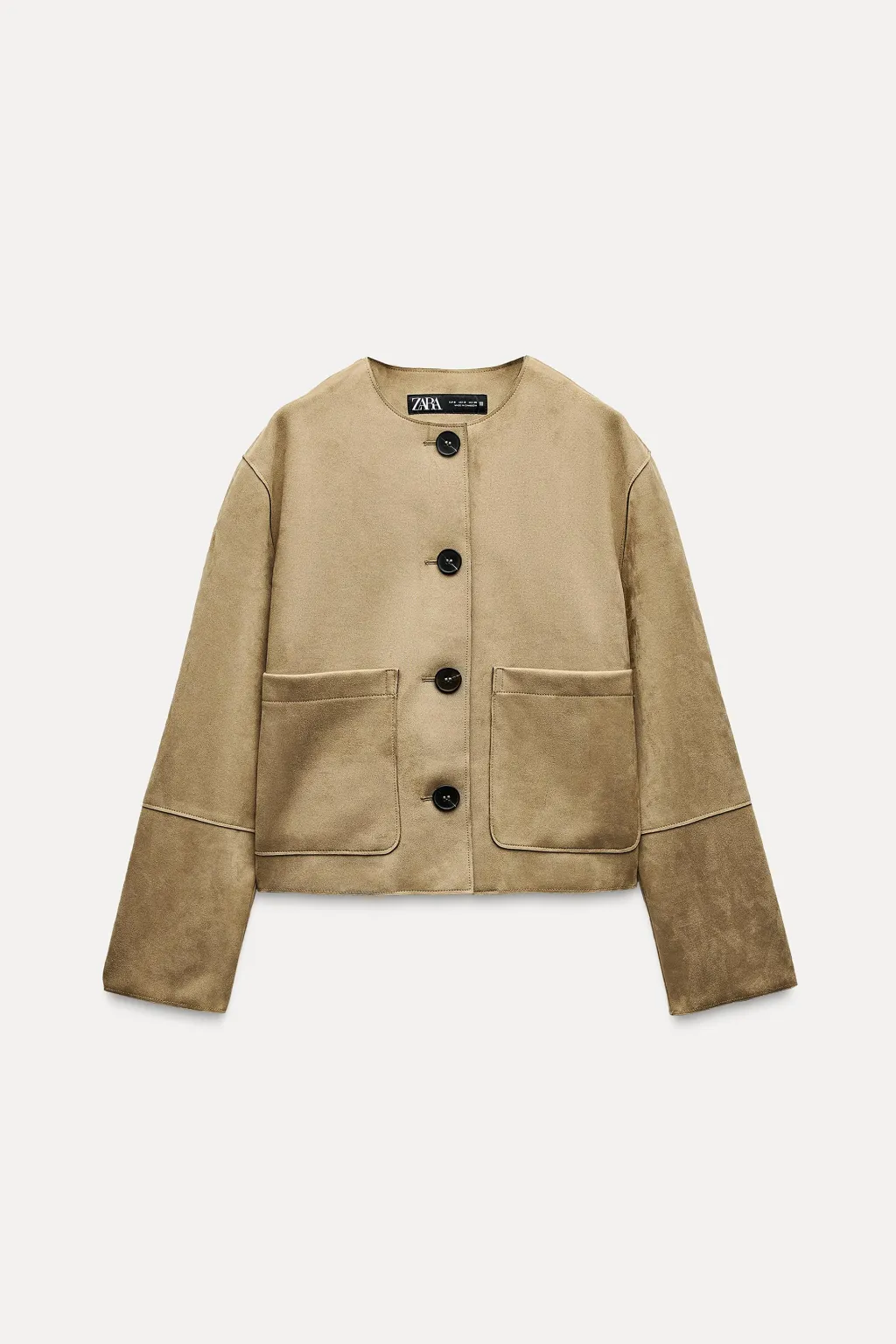 Cazadora de cuello redondo y manga larga. Bolsillos de plastrón en delantero. Cierre frontal con botones.