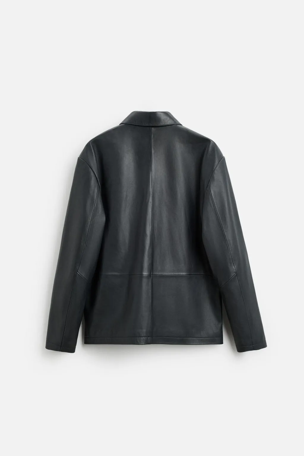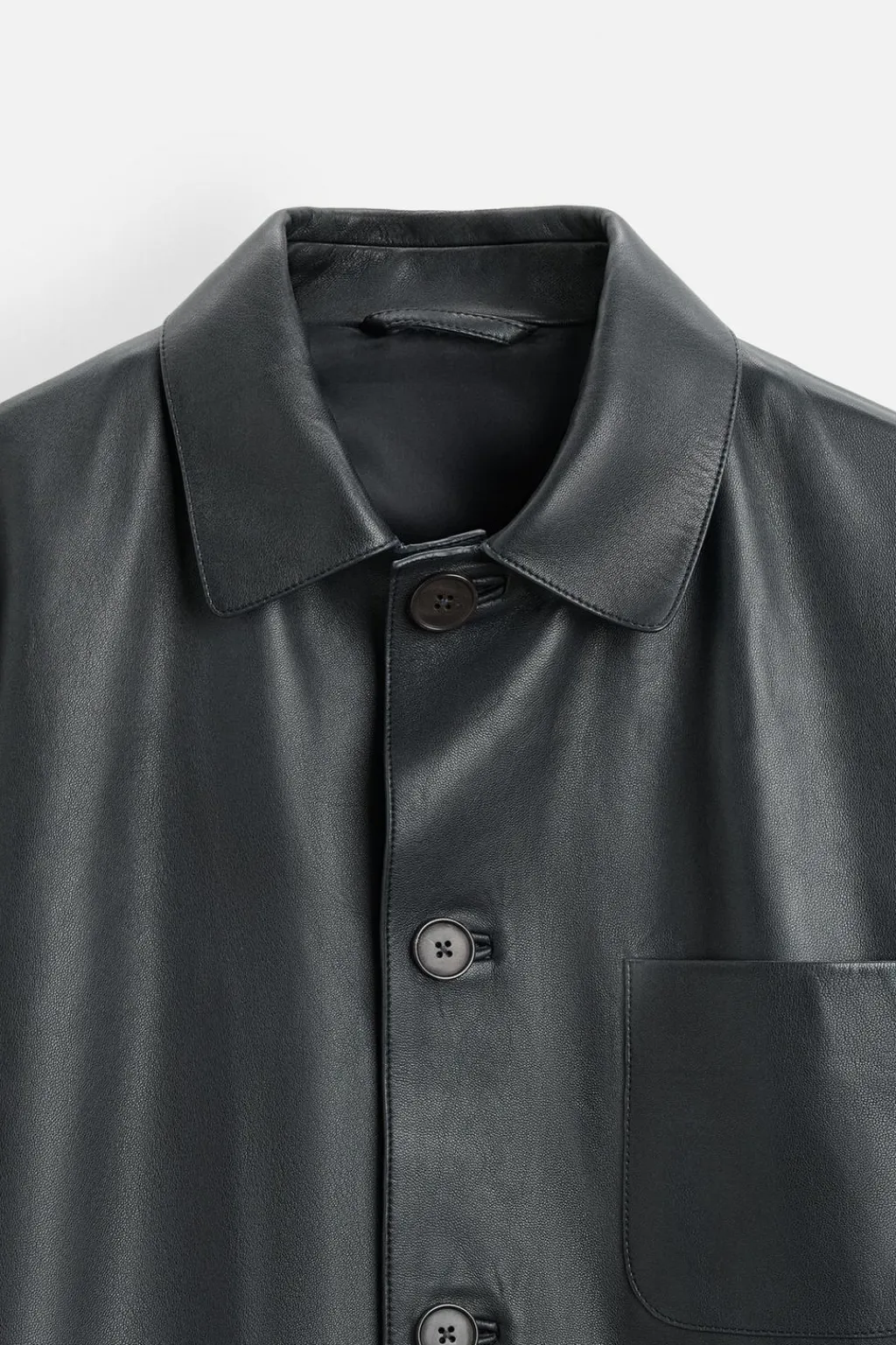 Cazadora relaxed fit confeccionada en piel.Cuello solapa y manga larga. Bolsillos plastrón en delantero. Cierre frontal de botonadura.