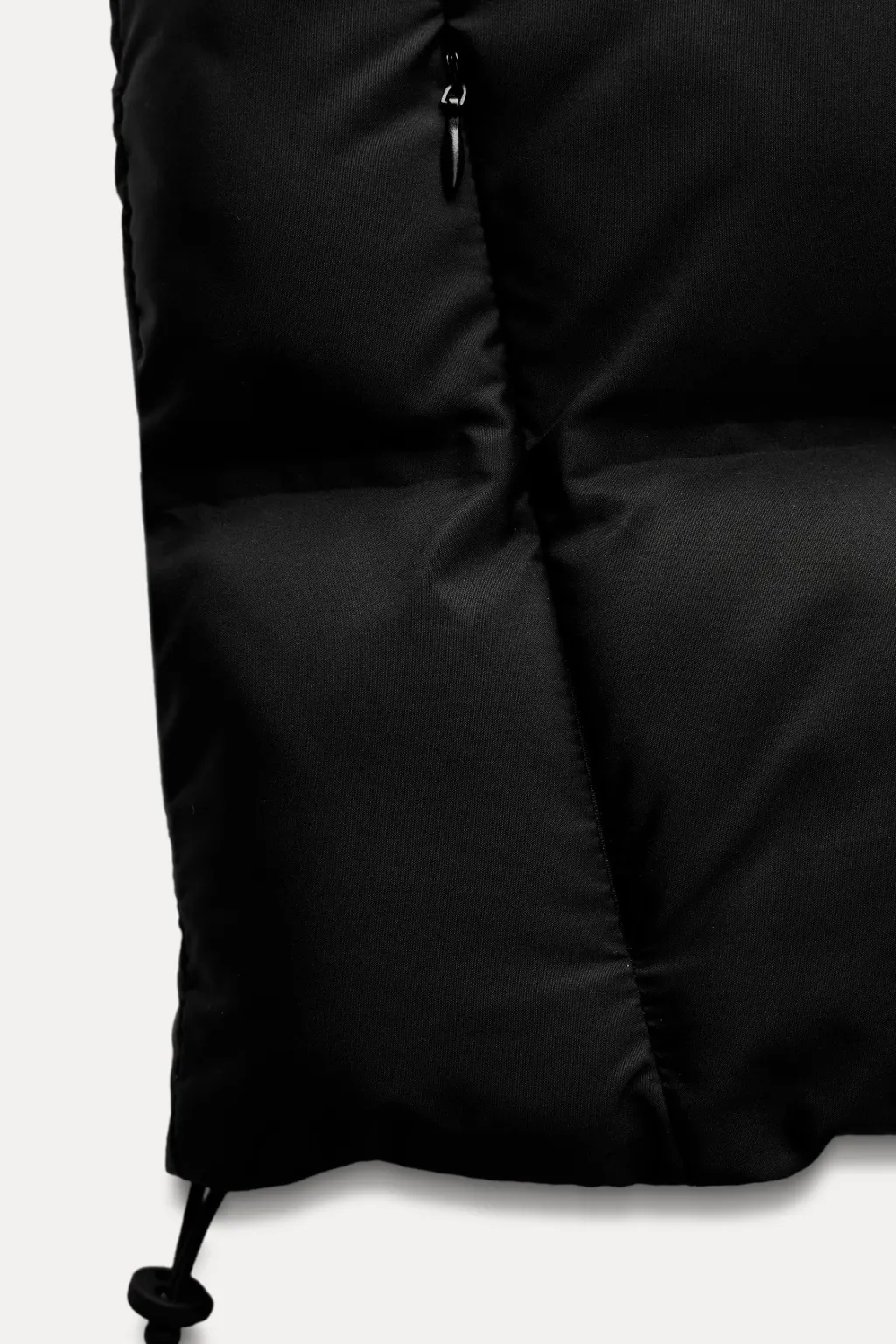 Chaleco water repellent de cuello subido y manga sisa. Bolsillos laterales con cremallera ocultos en costura. Bajo ajustable con cordón elástico y stoppers. Forro interior. Cierre frontal con cremallera.