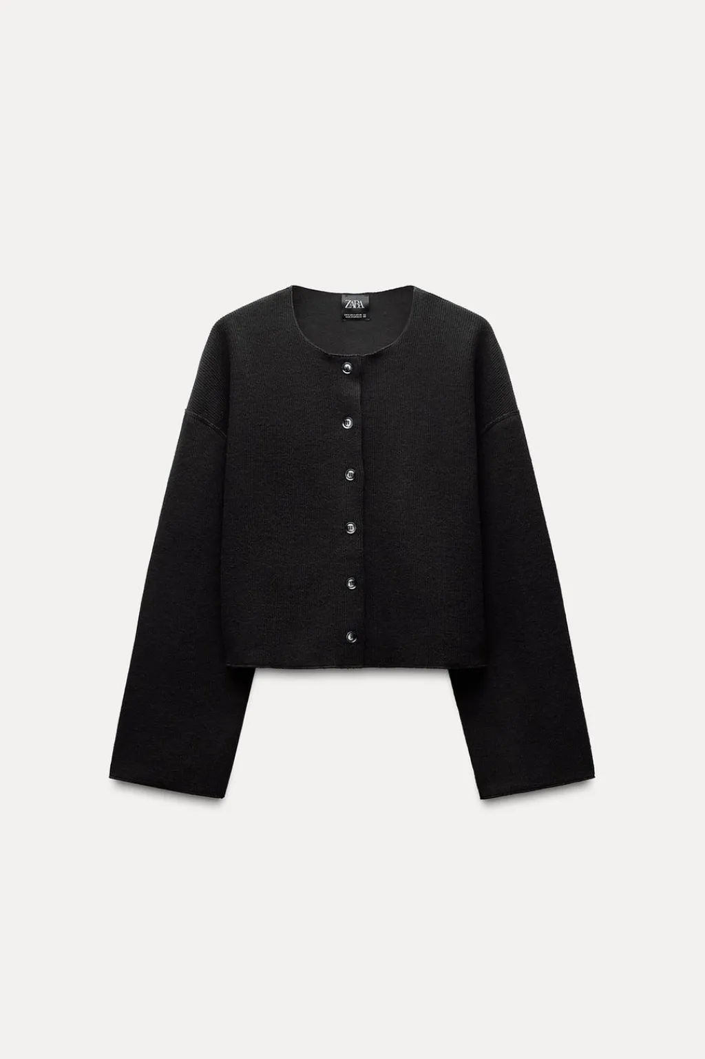 Chaqueta confeccionada en hilatura con algodón. Cuello redondo y manga larga. Cierre frontal con botones.